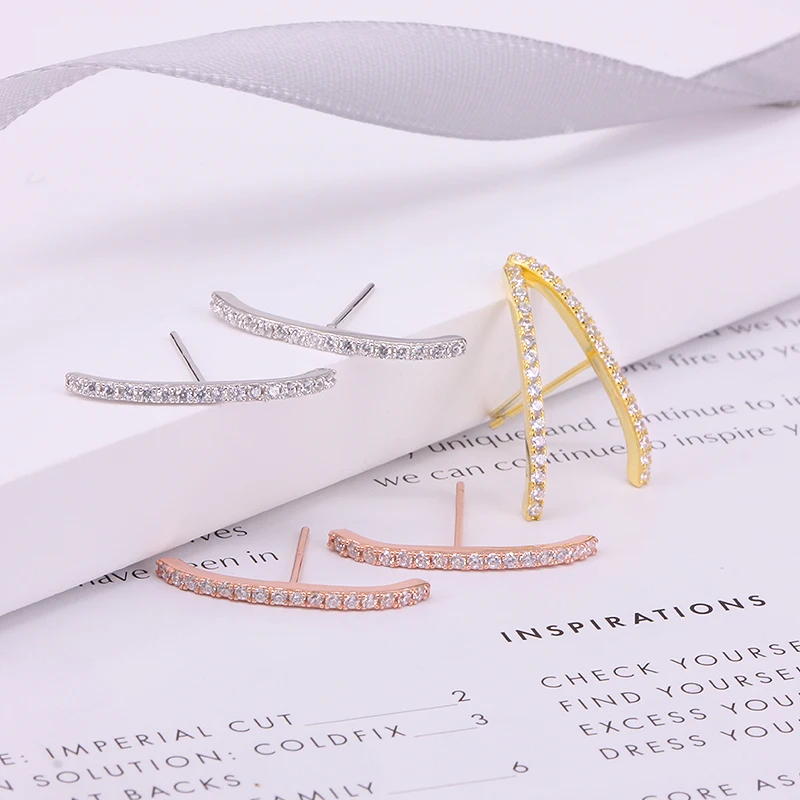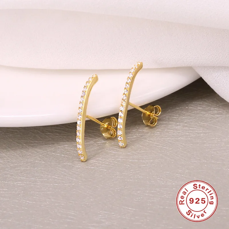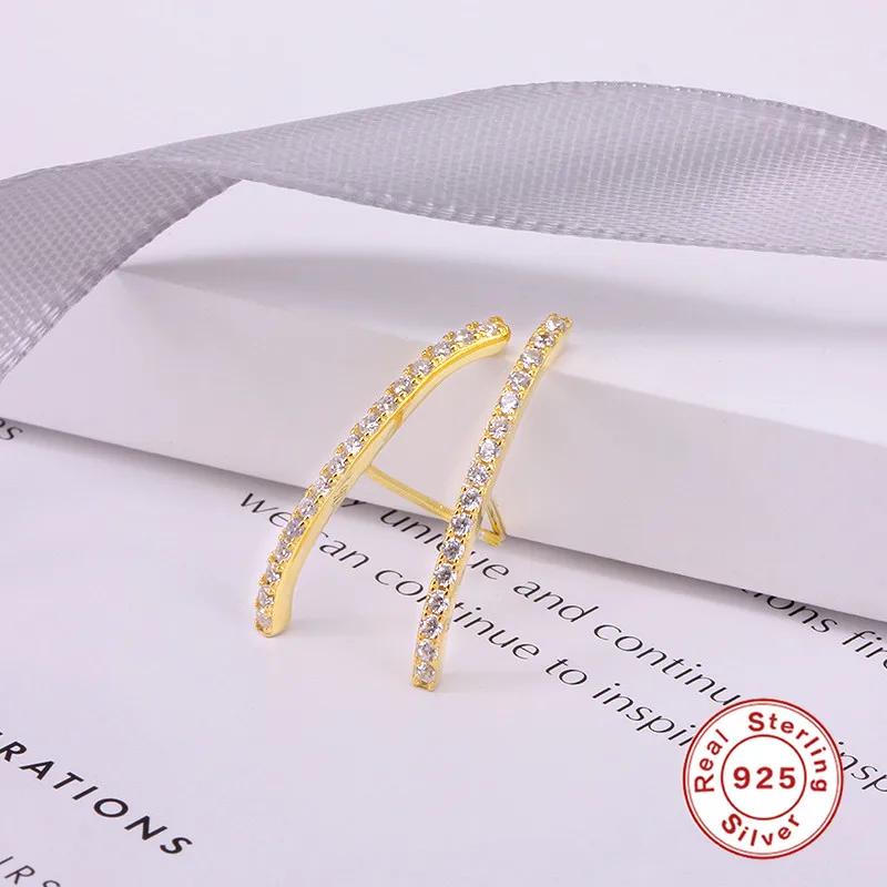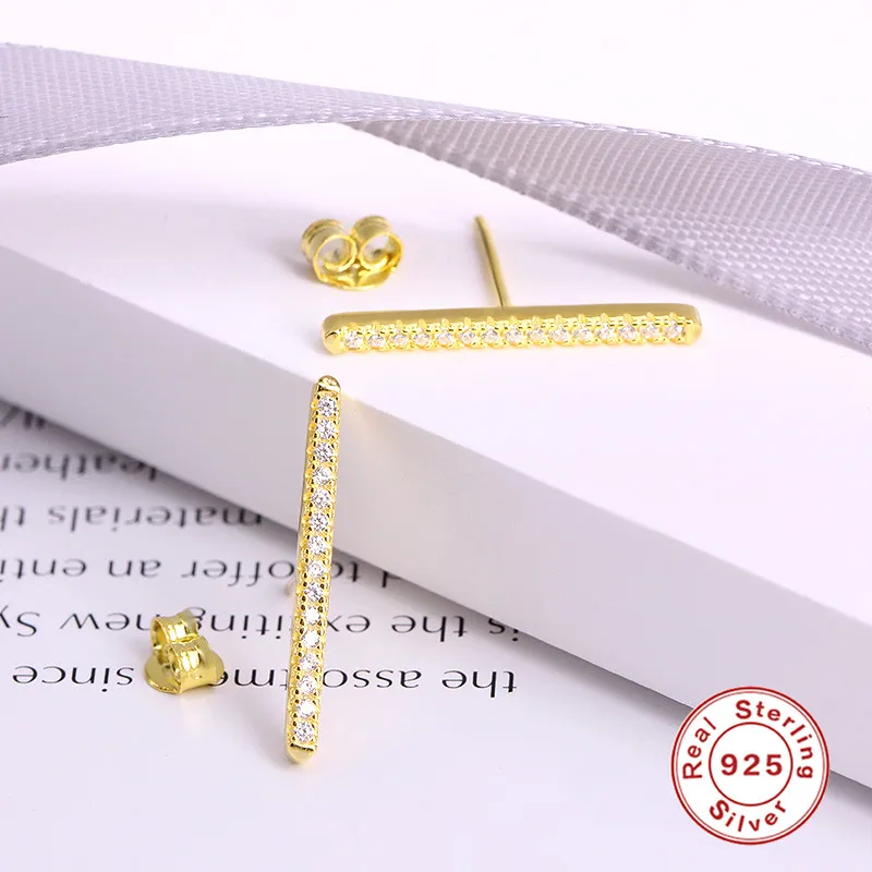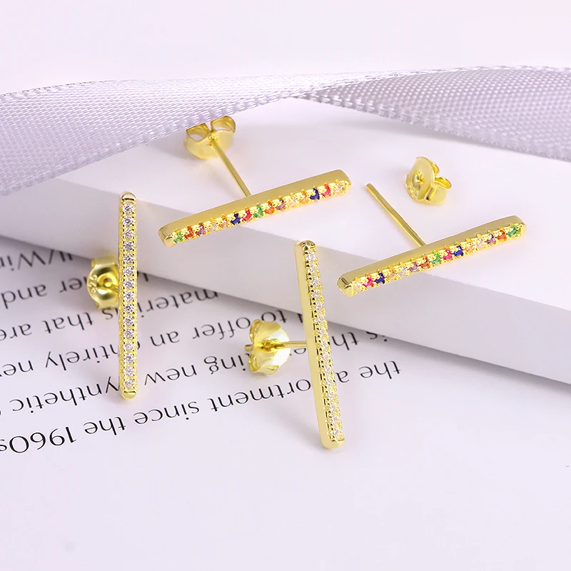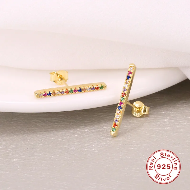 GS 925 стерлингового серебра геометрические Длинные линии, серьги со шпилькой, для женщин, изысканные разноцветный Цирконий бар лист Форма шпильки ювелирные изделия