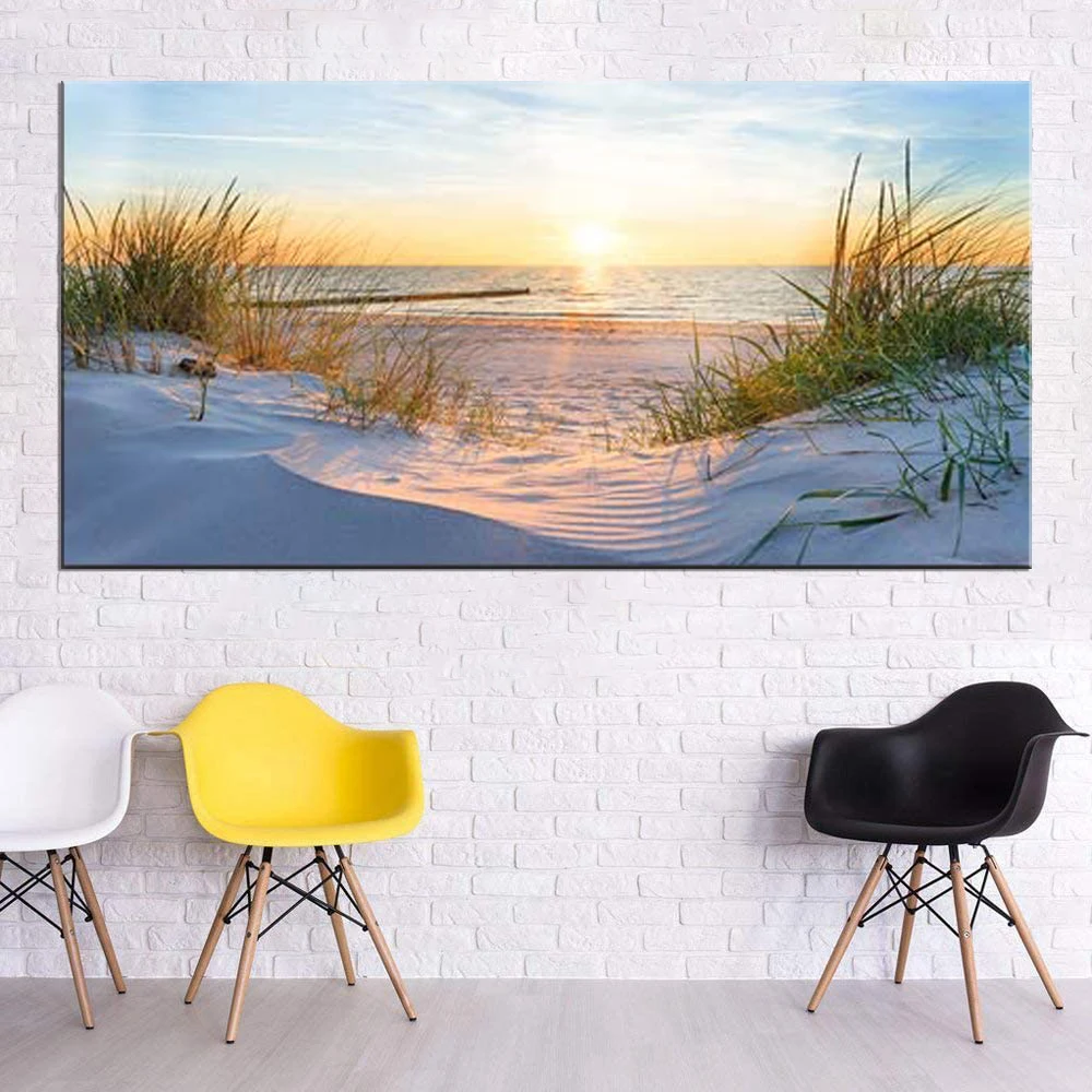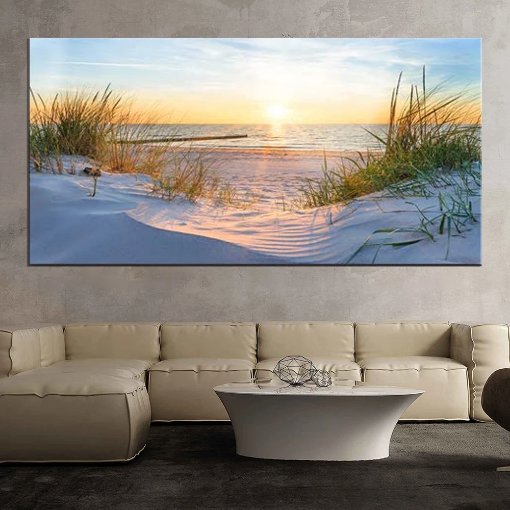 Настенное искусство для гостиной, печать, художественный декор, холст, постер, синее солнце, пляж, трава, океан, пейзаж, живопись, спальня, ванная комната, Декор