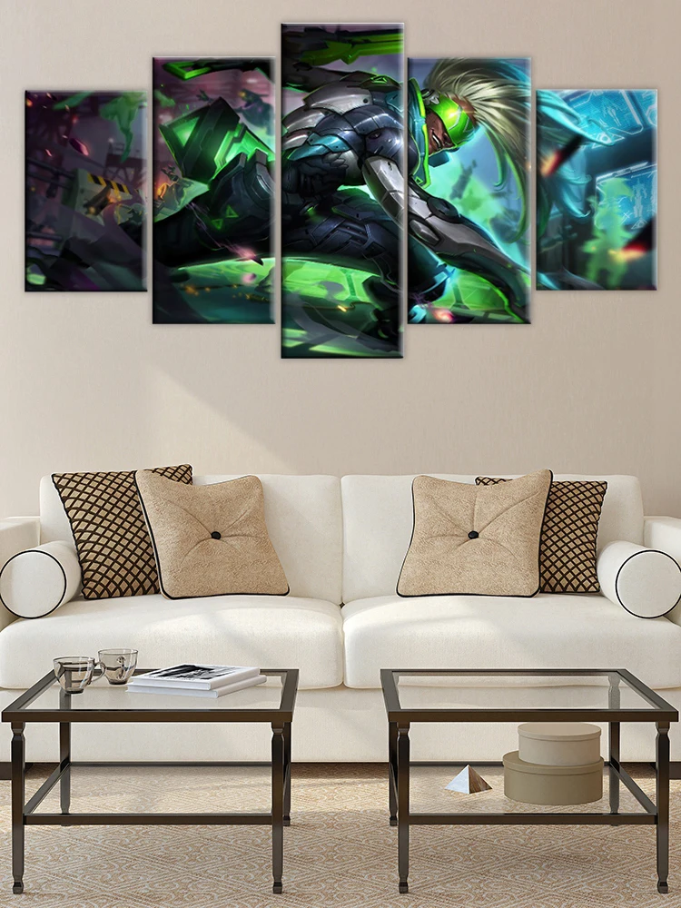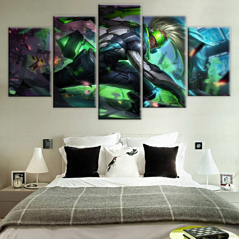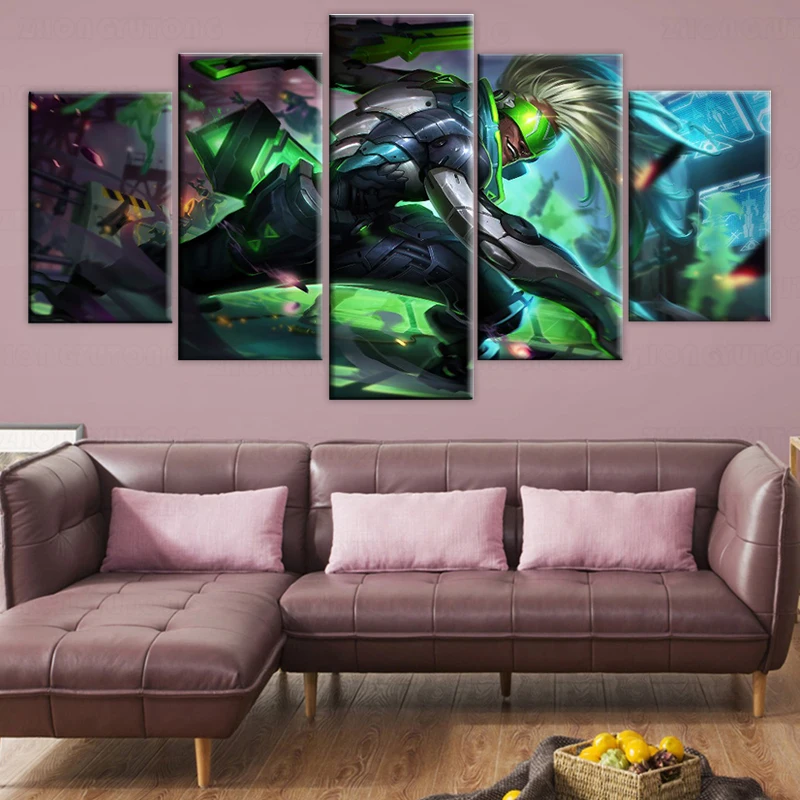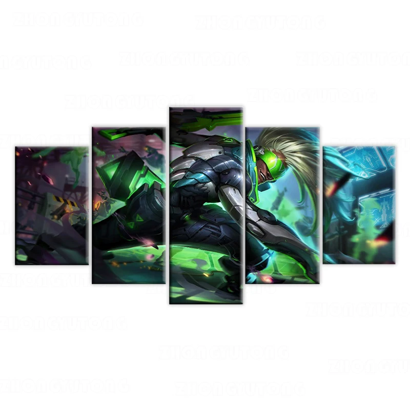 Современное домашнее декоративное настенное искусство модульное изображение 5 шт. Картина на холсте с рамкой проект игры Лига Легенд Картина Ekko