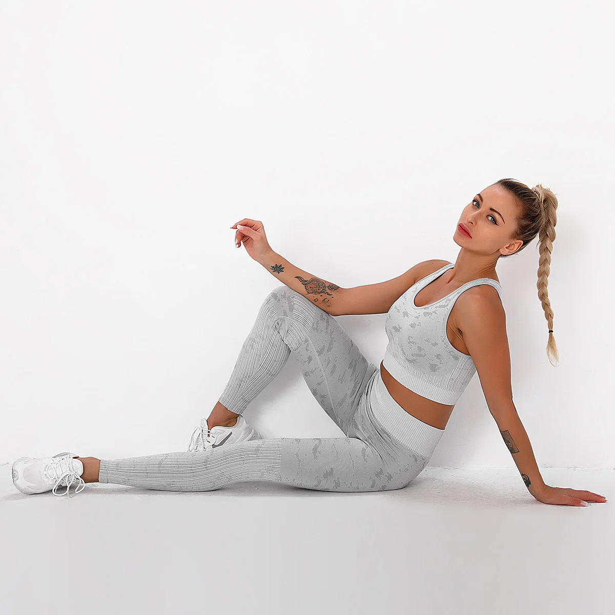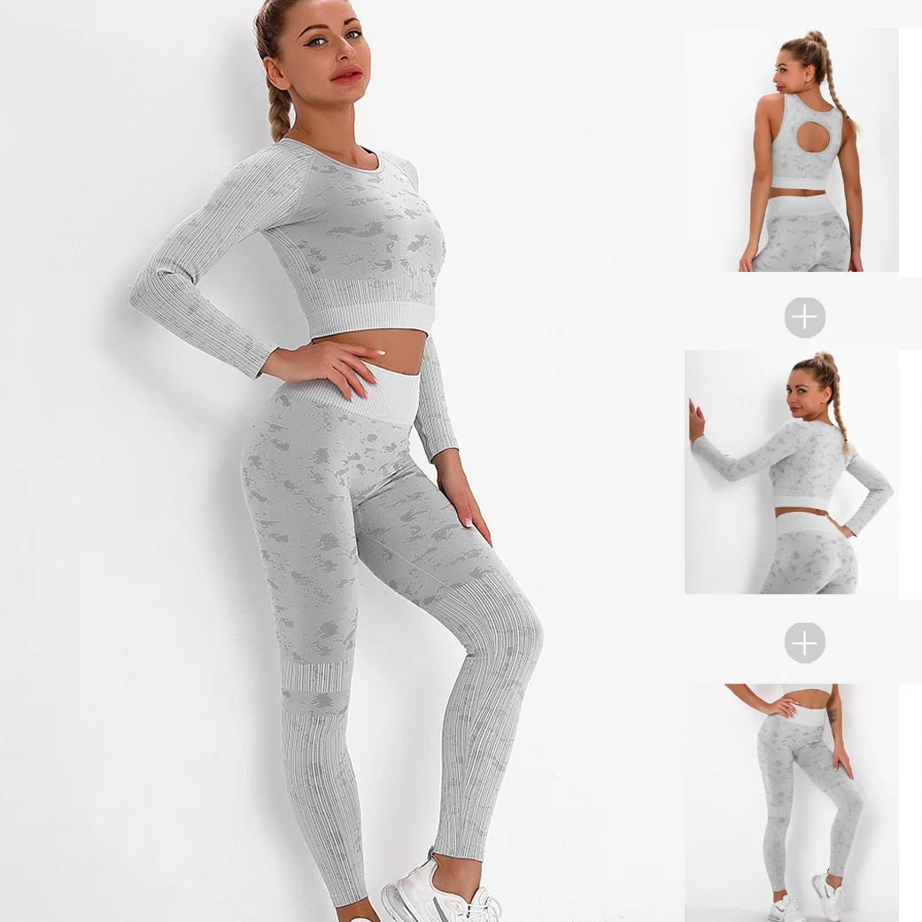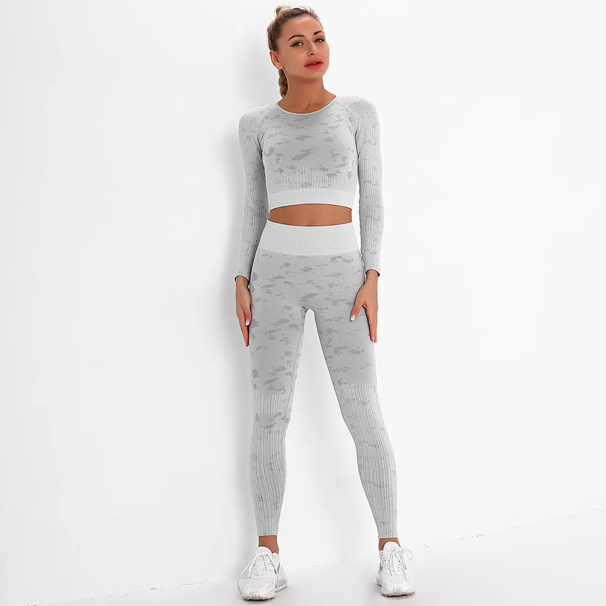 Спортивный женский костюм из 2 предметов, спортивная одежда для тренировок, женский комплект одежды для спортзала, спортивный комплект, комплект для фитнеса, бесшовная одежда с высокой талией для спортзала