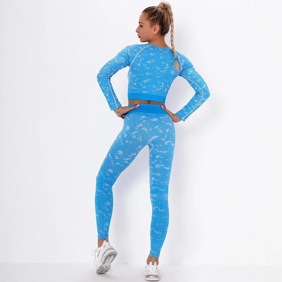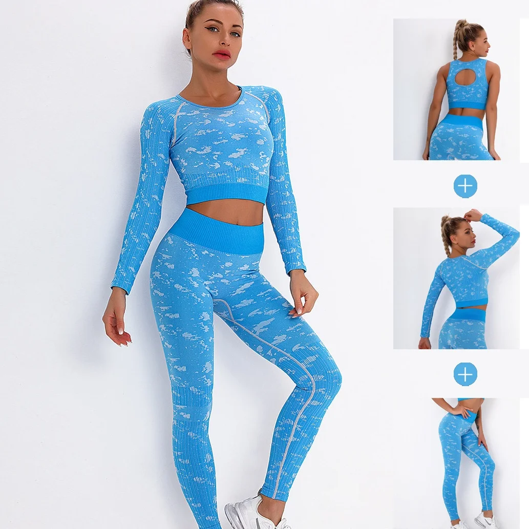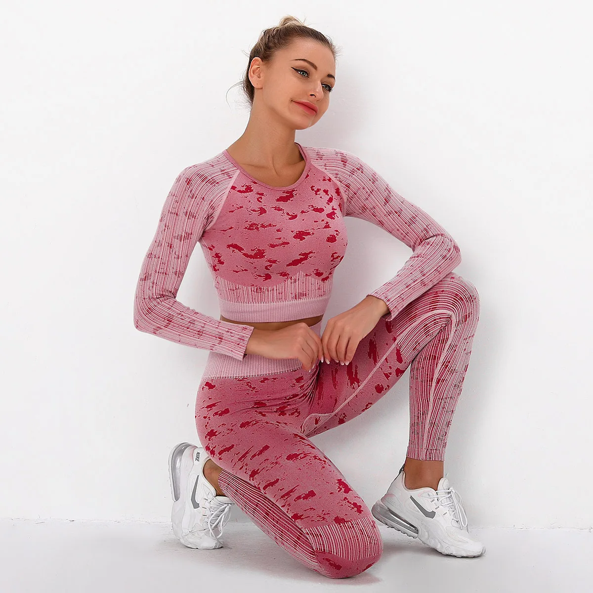 Спортивный женский костюм из 2 предметов, спортивная одежда для тренировок, женский комплект одежды для спортзала, спортивный комплект, комплект для фитнеса, бесшовная одежда с высокой талией для спортзала