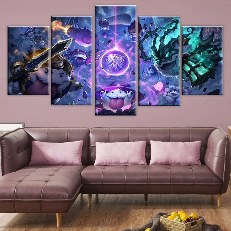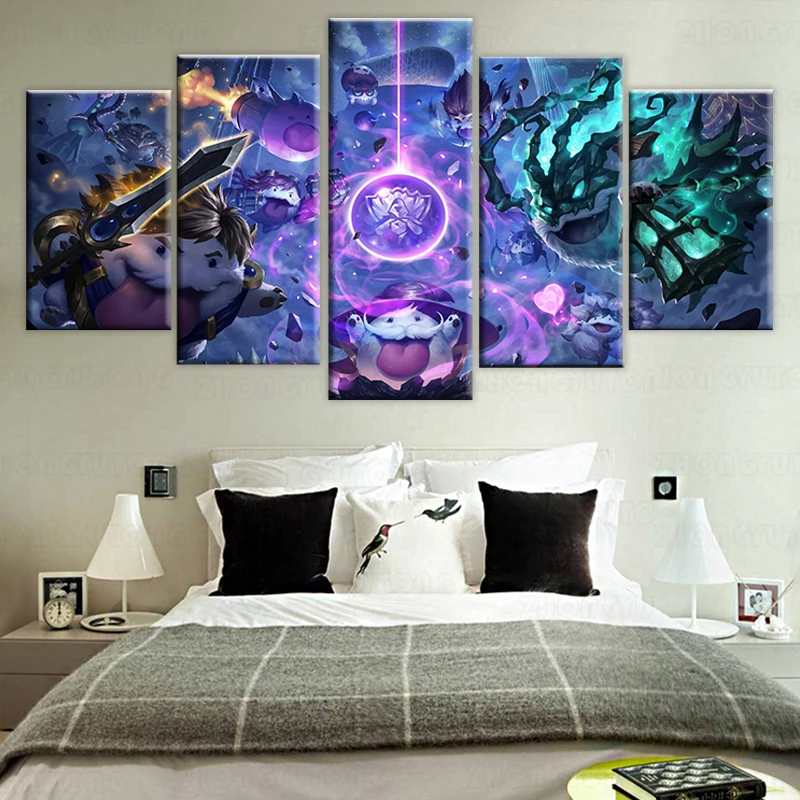 Модульная картина для домашнего декора, 5 штук, Лига героев игры Лига Легенд, постер для дома, холст, оптовая продажа
