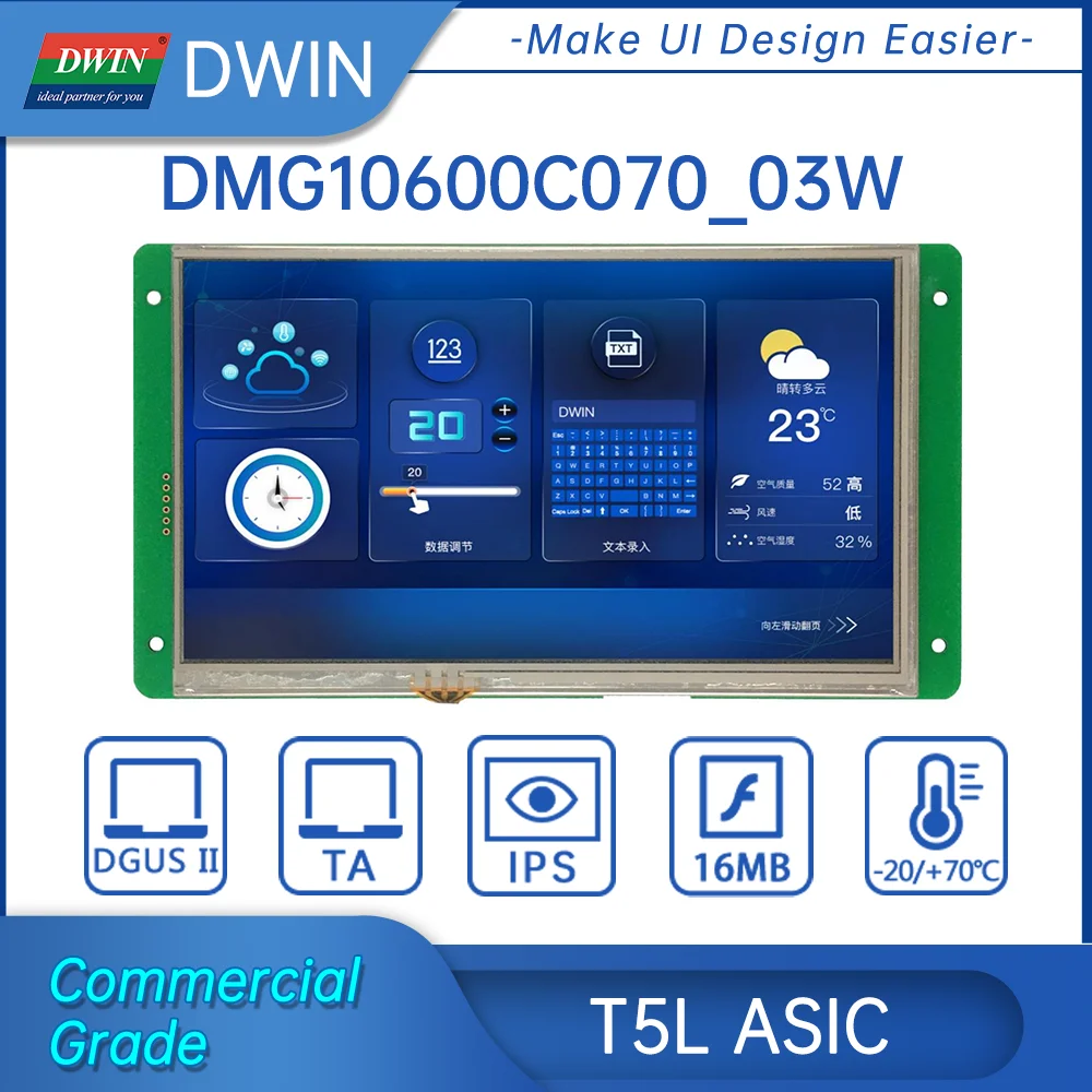 DWIN 7 дюймов ЖК-дисплей на основе тонкоплёночной технологии, 1024*600 HMI умный сенсорный экран, товарного сорта, смарт-UART серийный сенсорный экран IPS LCD модуль, DMG10600C070_03W