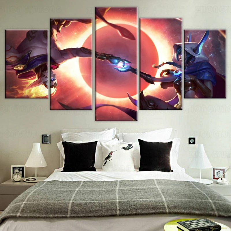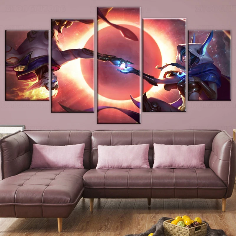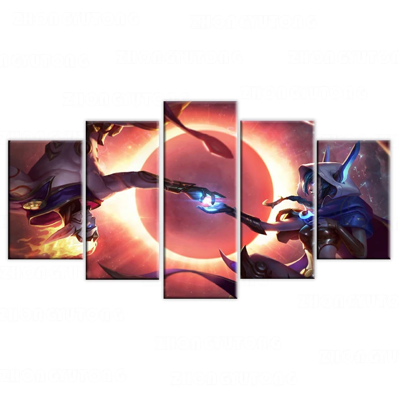 Современная печать на холсте из 5 предметов космическая Лига Легенд, плакаты ракань и иая, игровой Современный домашний декор, настенные художественные картины