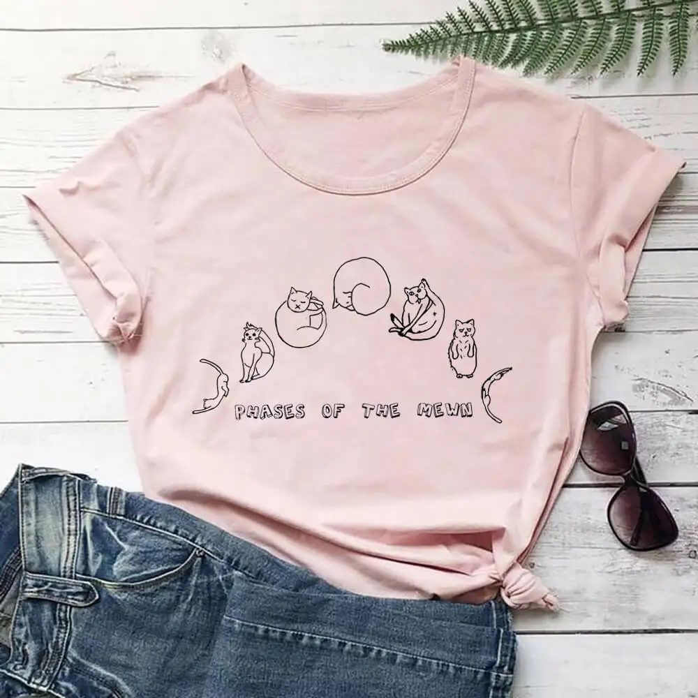 Футболка женская с принтом фазы Mewn, 100% хлопок, с рисунком кошки, мамы, летняя футболка с круглым вырезом и коротким рукавом