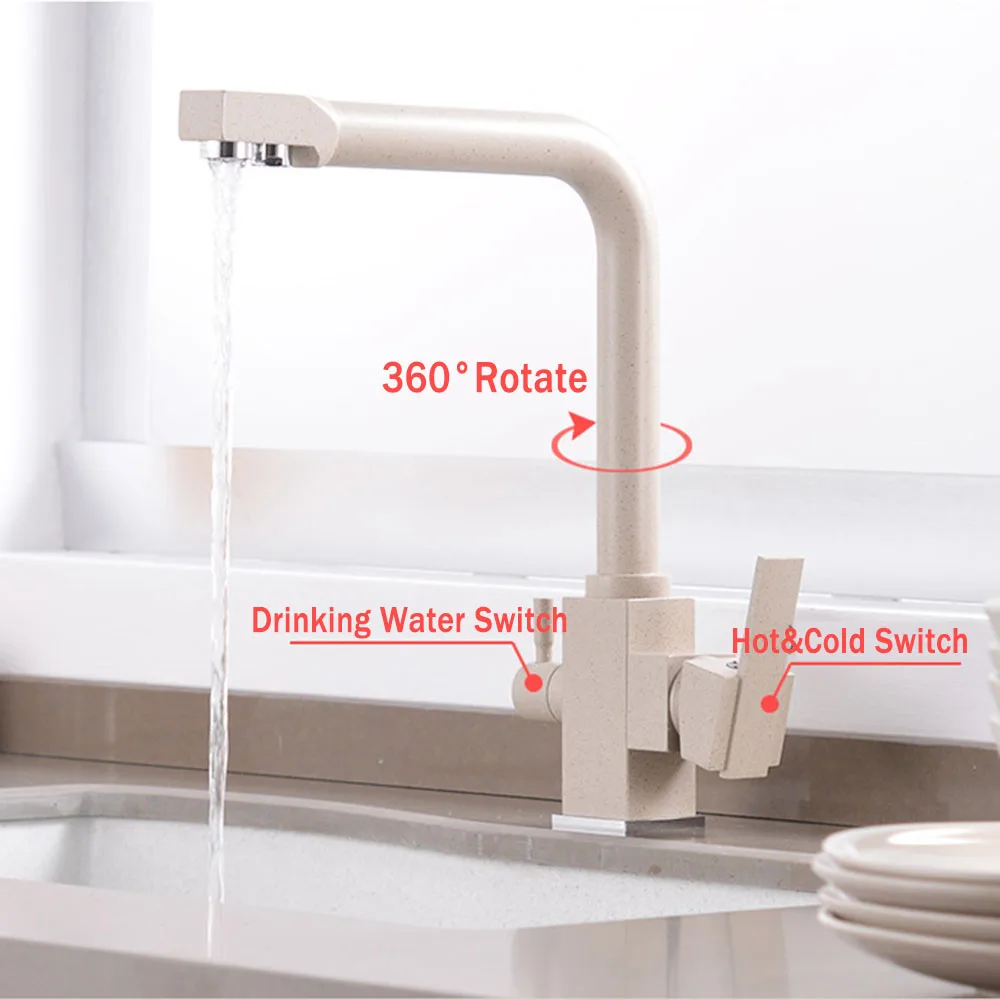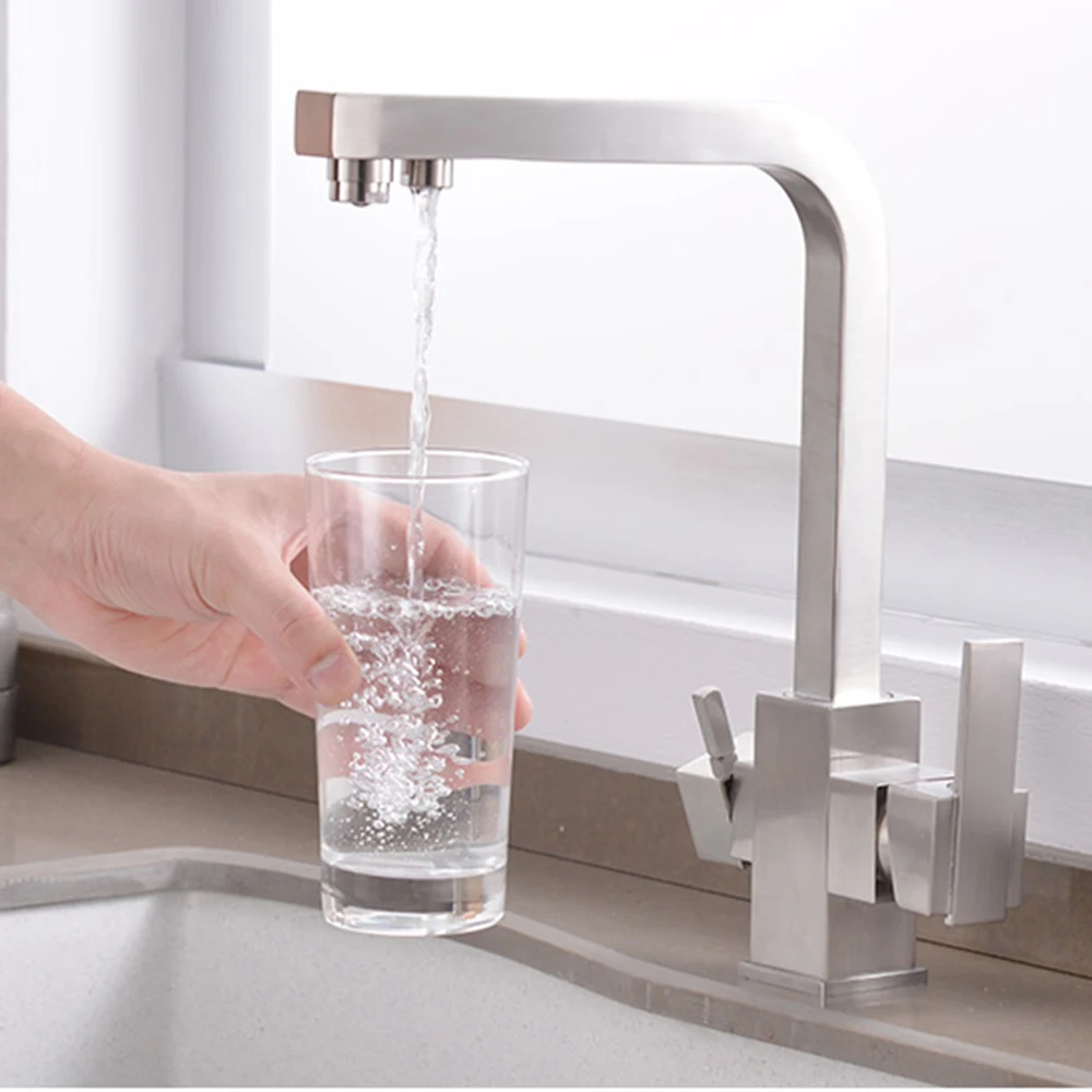 Черный, белый цвет латуни класса люкс чистой воды Кухня кран с двойной ручкой горячей и холодной питьевой воды 3-х полосная фильтр Кухня смесителиФункция: кухонный кранМатериал: твердая латунь;Отделка: античная отделкаУстановка: на палубеГорячая и холодная вода: ДаЦвет: белый/шар/белый с 10 дюймов крышка/шар с 10 дюймов полное покрытиеСпециальные Особенности; Тихий близко, легко установить