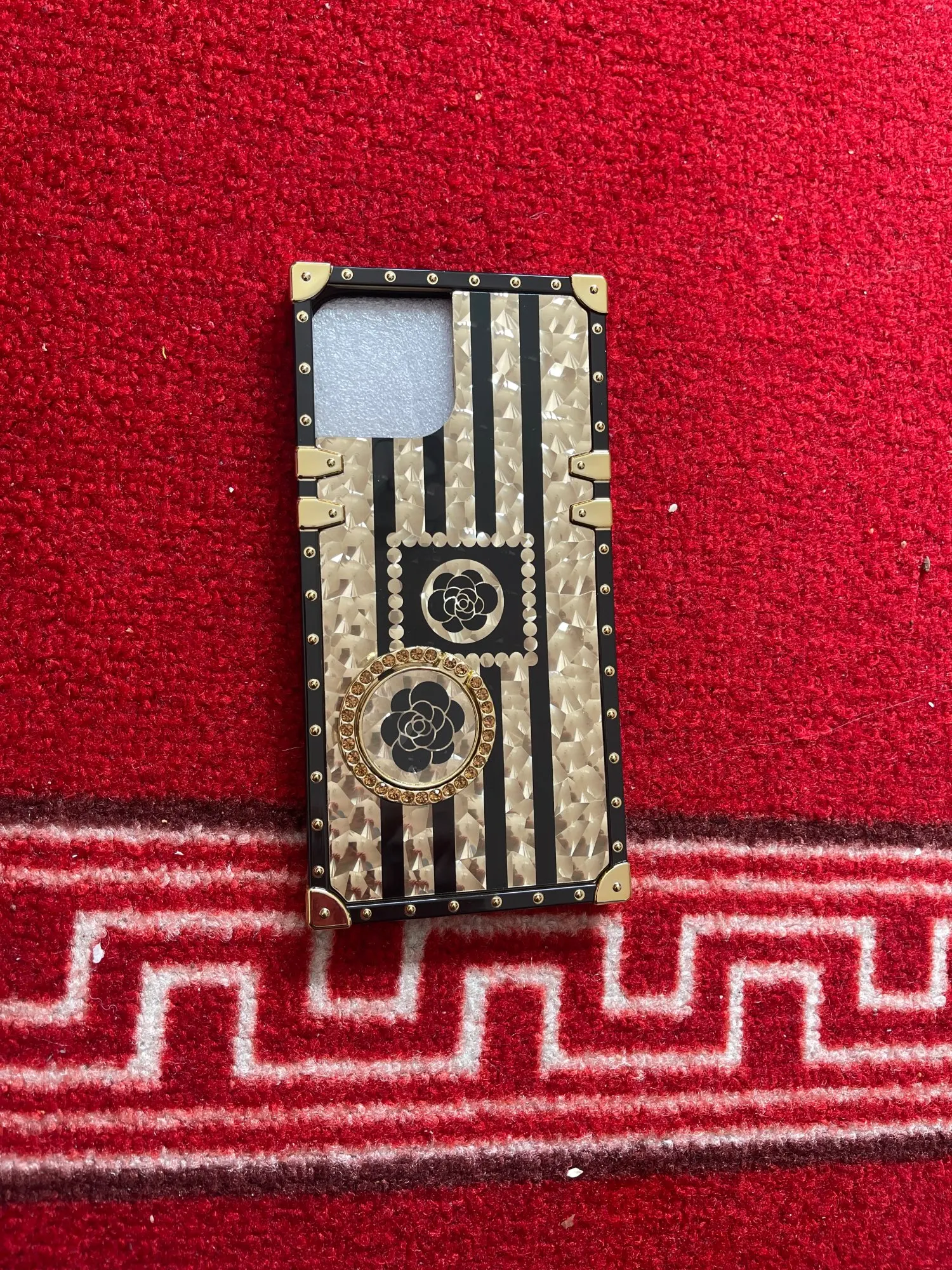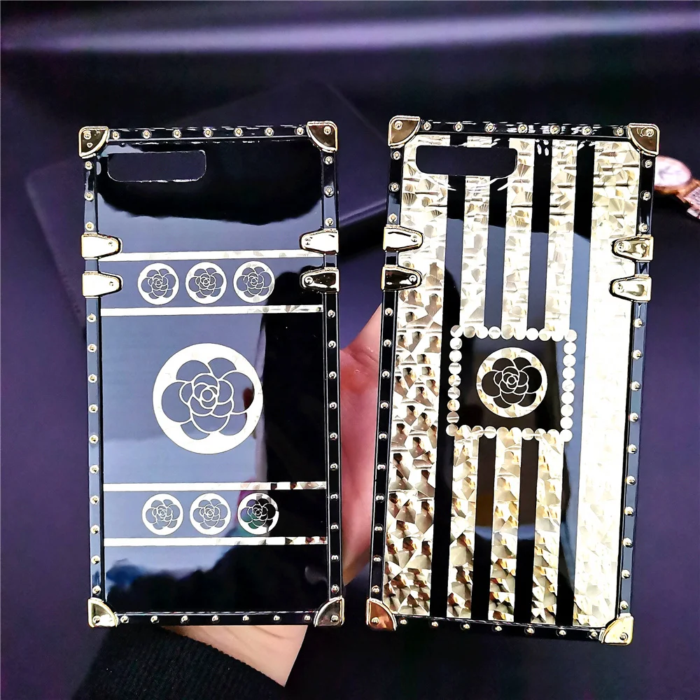 Брендовый блестящий черный цветочный чехол для iphone 12 PRO MAX X XS MAX XR 11 PRO 6 6S 7 8 PLUS, Блестящий Золотой квадратный чехол с бриллиантами