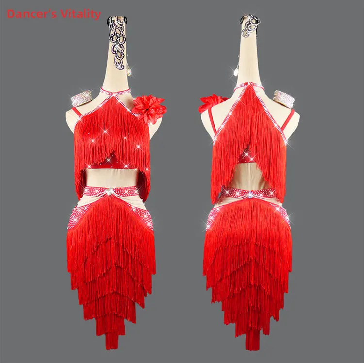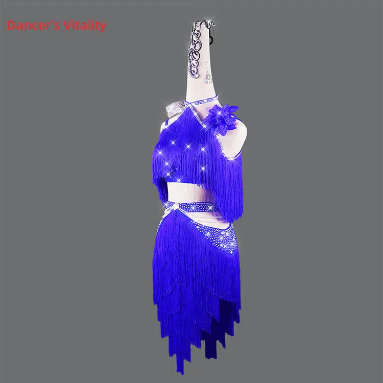 Платье для латиноамериканских танцев, длинная юбка с бахромой, украшенная стразами, сценическая одежда, Высококачественная индивидуальная одежда для женщин, взрослых и детей, для соревнований