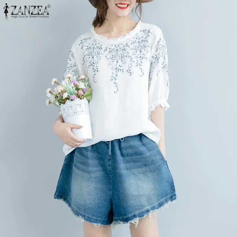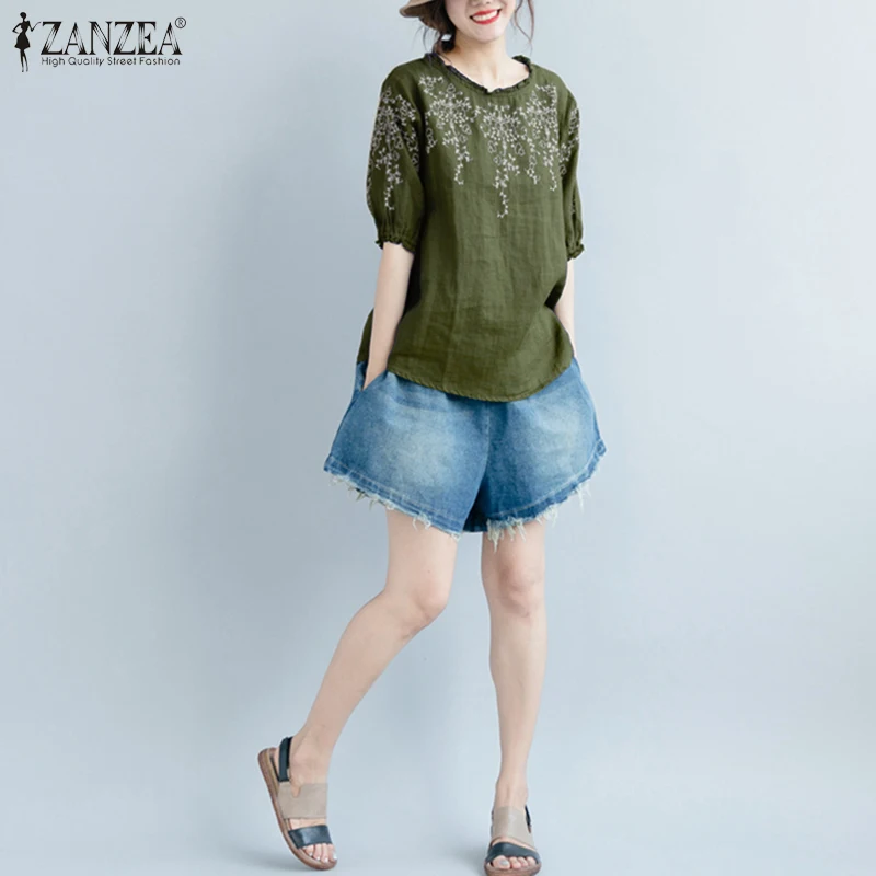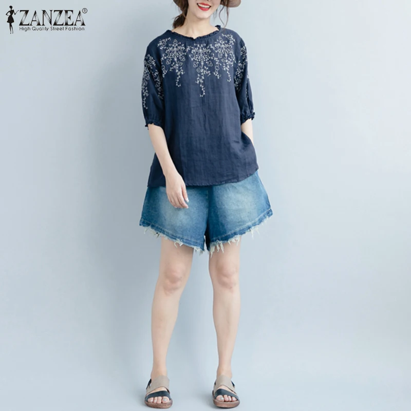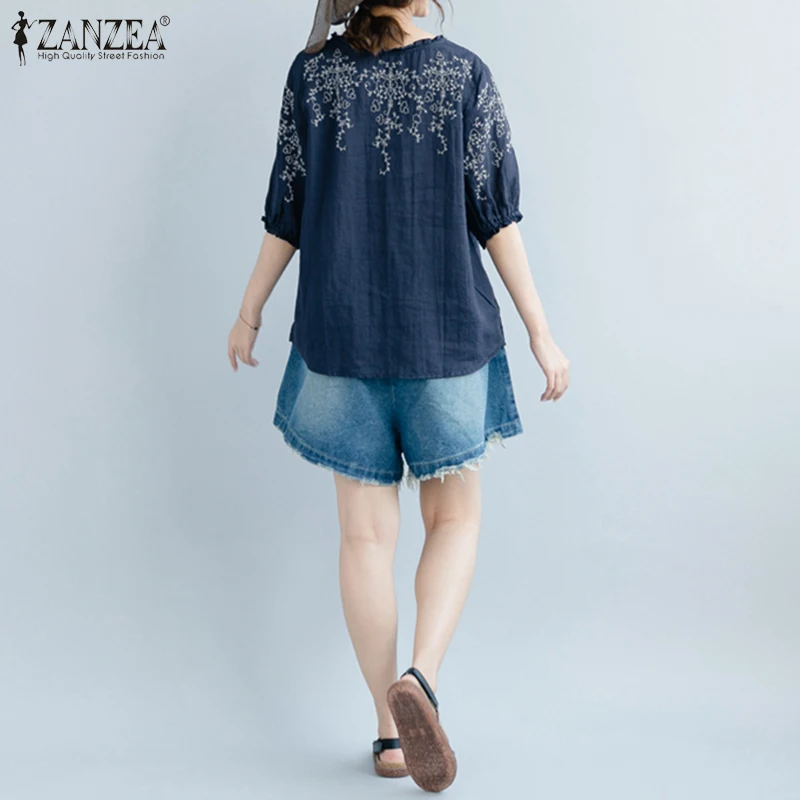 Блузка ZANZEA женская с вышивкой, повседневный кафтан с рукавом до ...