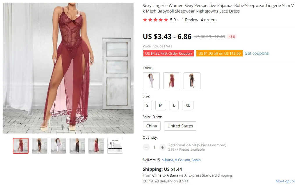 Страна: ES Color: style1-color1 Size: M Ships From: China Pieces: 1pc Доставка: Cainiao Expedited Economy 02.10.2021