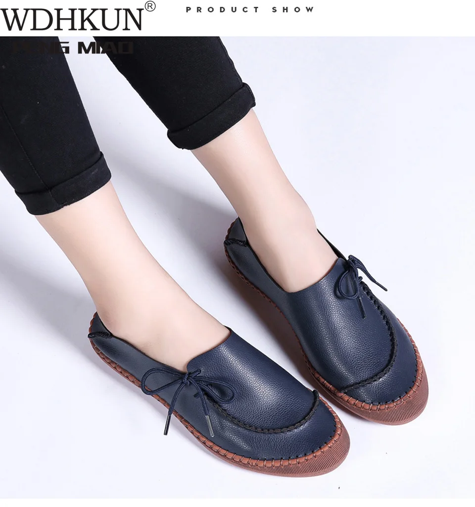 Балетки женские из натуральной кожи, мягкие дышащие, без застежки, лоферы, повседневная обувь с круглым носком, плоская подошва