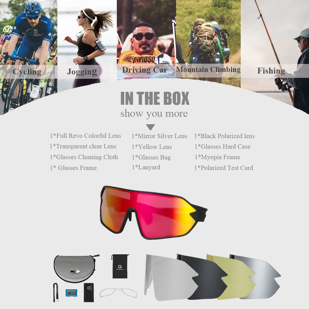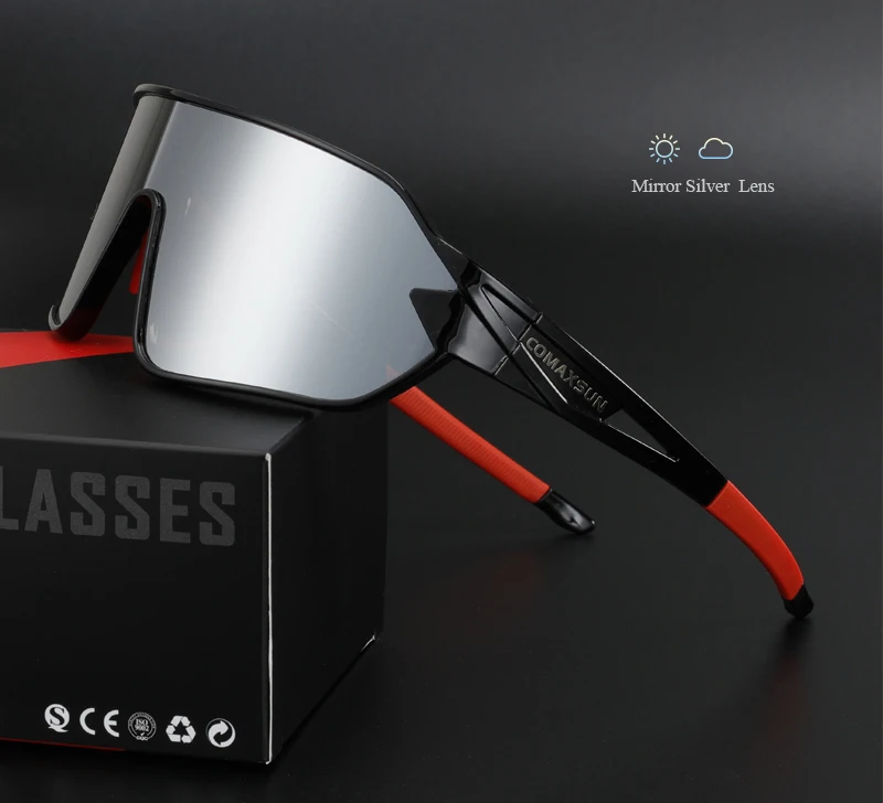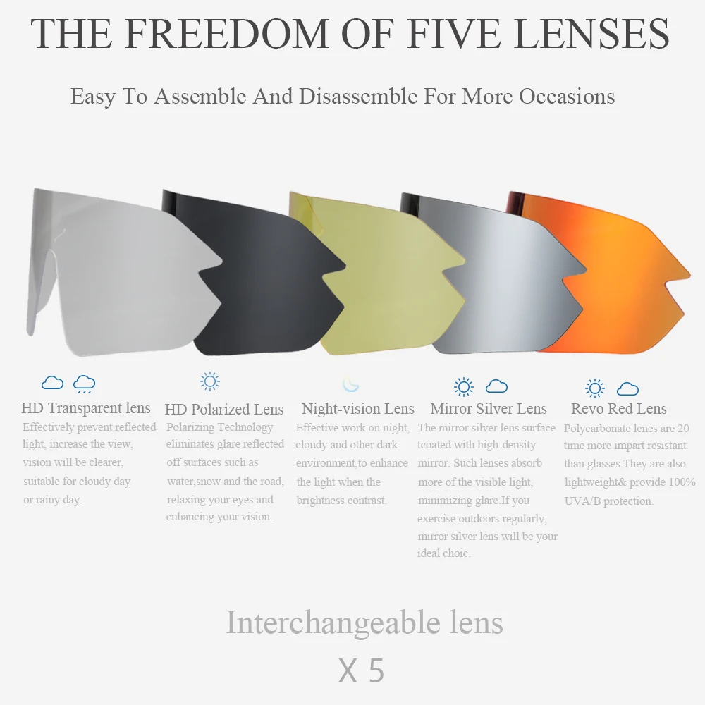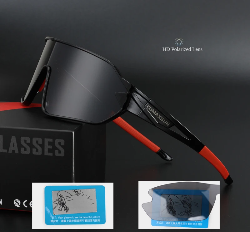 Поляризованные велосипедные очки COMAXSUN, 5 линз, спортивные зеркальные солнцезащитные очки для горных велосипедов, Anti-UV400 очки для езды на велосипеде