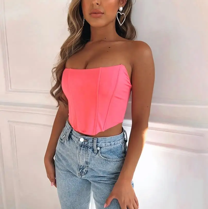 Женский сексуальный бюстье сплошной цвет с открытыми плечами укороченный топ на бретелях пуш-ап без бретелек корсеты