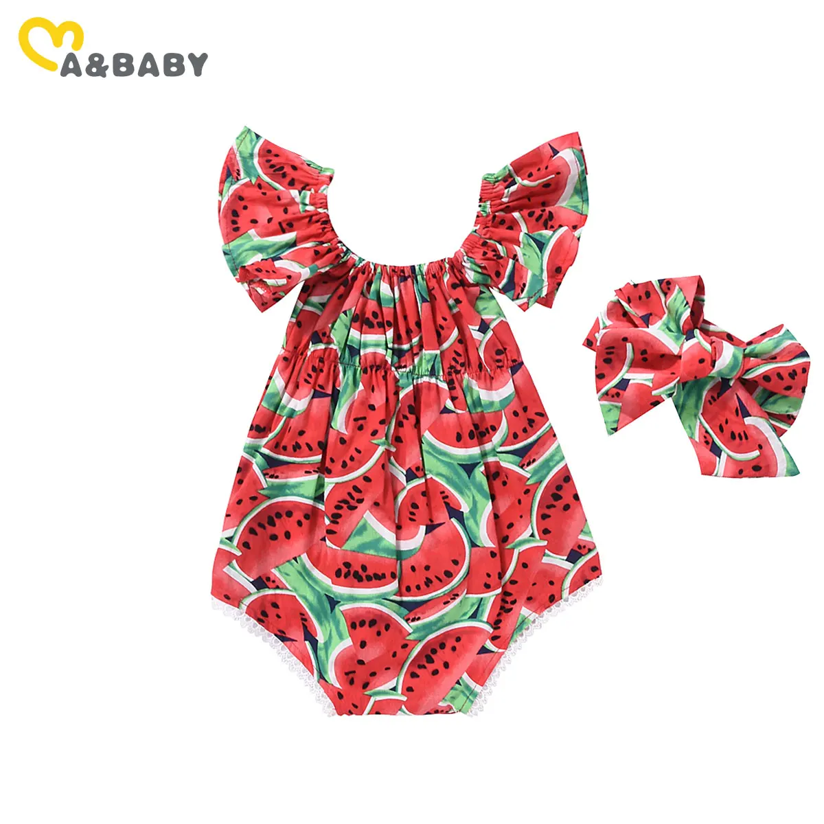 Детский комбинезон с открытыми плечами Ma Baby, Летний комбинезон для новорожденных и девочек от 0 до 24 месяцев, с арбузом, костюм от солнца, одежда, костюмы D84
