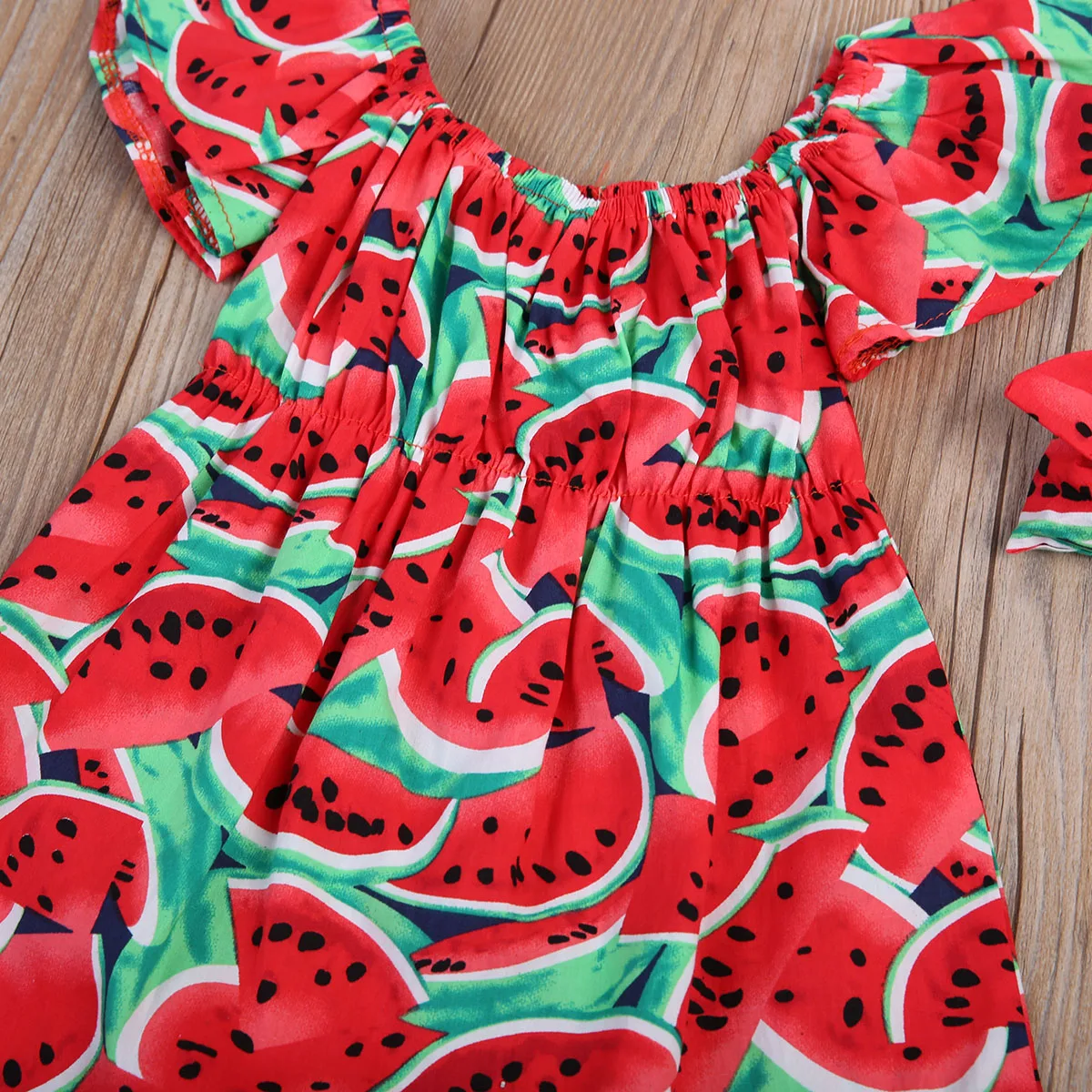 Боди для девочек с принтом арбуза, коротким рукавом и круглым вырез...