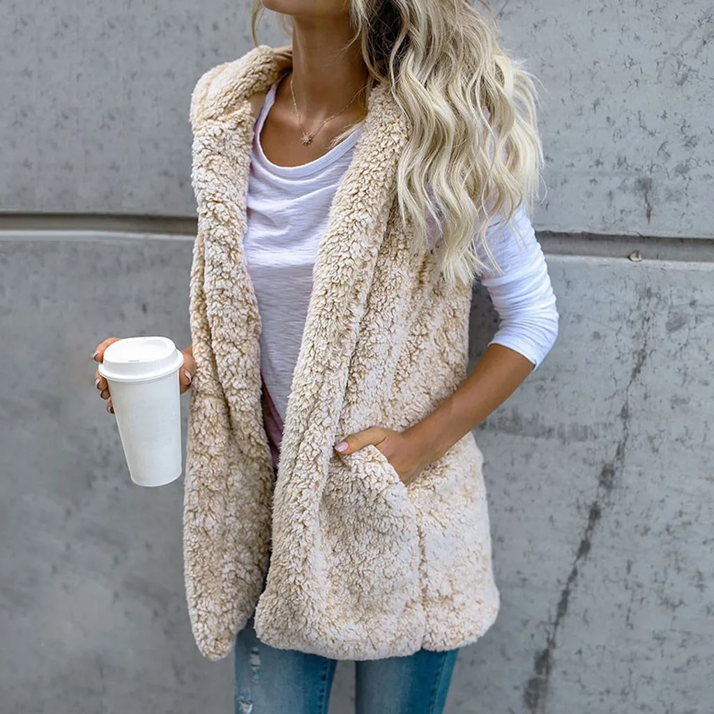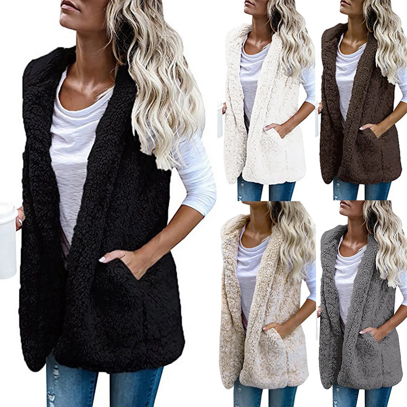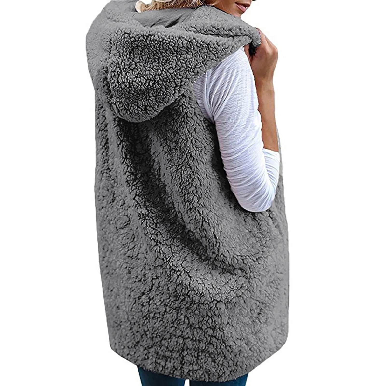 Зимние плюшевые жилеты 40 #, пальто, Женская толстовка, верхняя одежда, повседневное теплое свободное однотонное пальто без рукавов, шерстяной кардиган, жилет, Женская Куртка