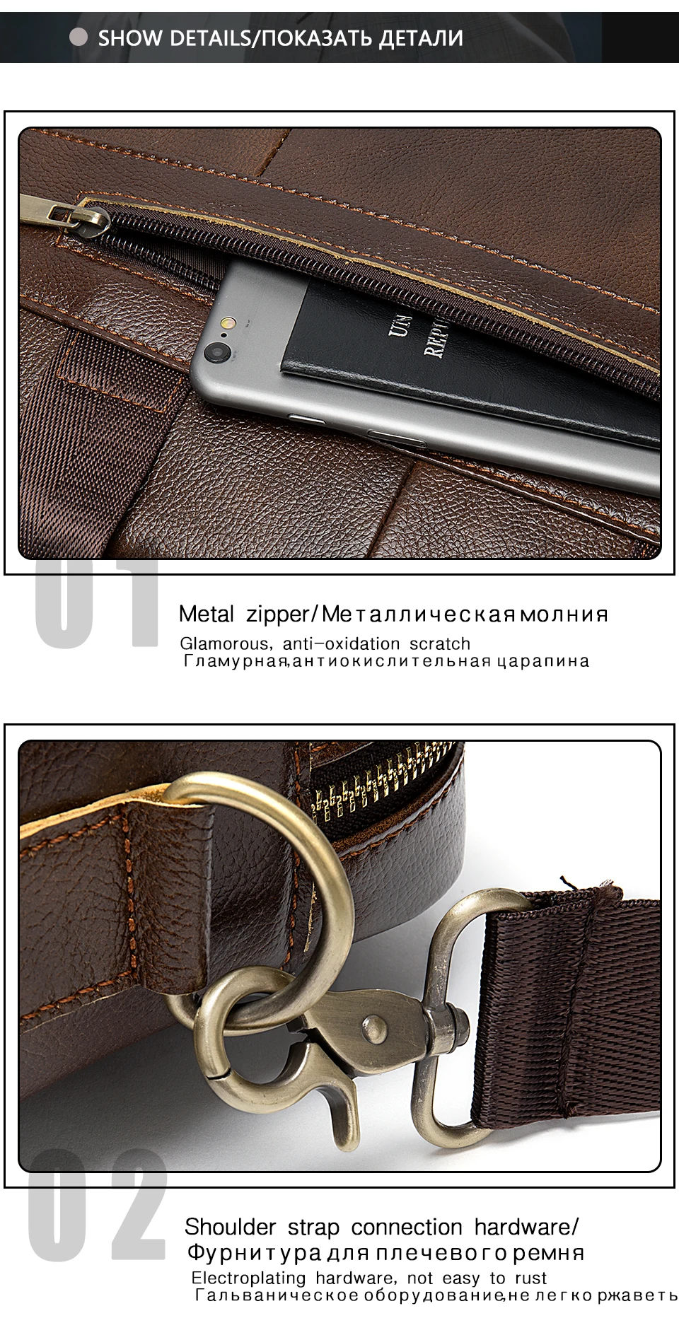 Мужской портфель из натуральной кожи, брендовая кожаная мужская сум...