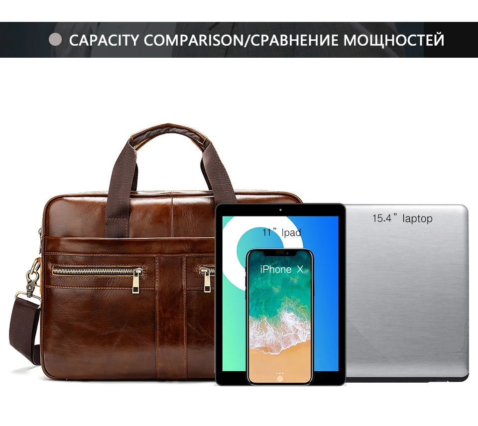 Портфель из натуральной воловьей кожи для мужчин и женщин, вместите...