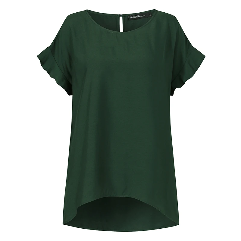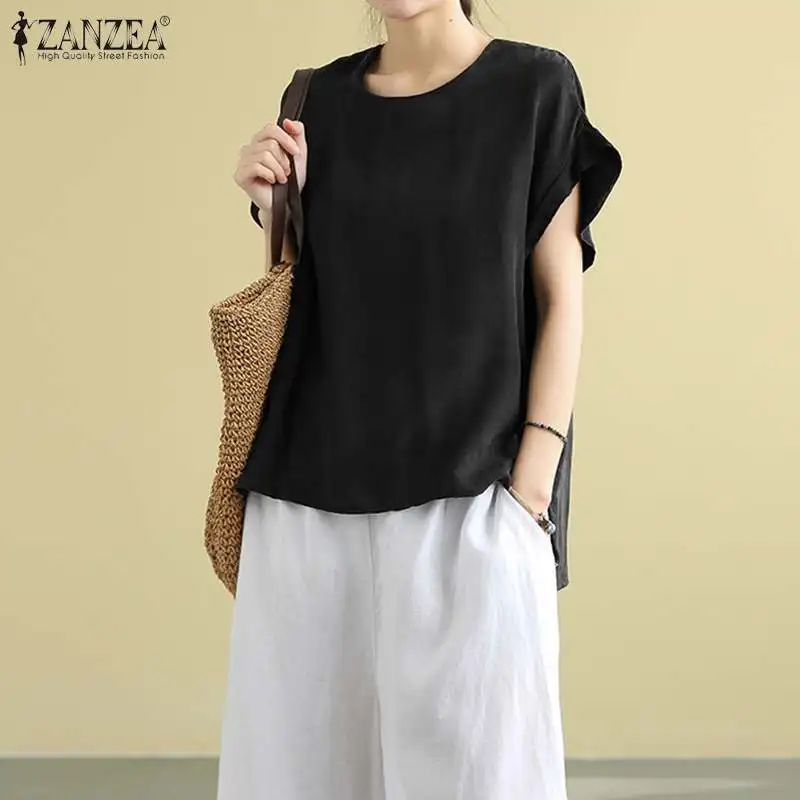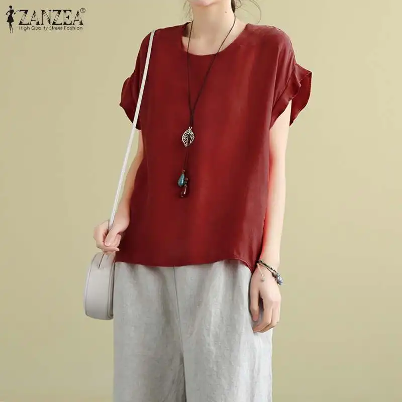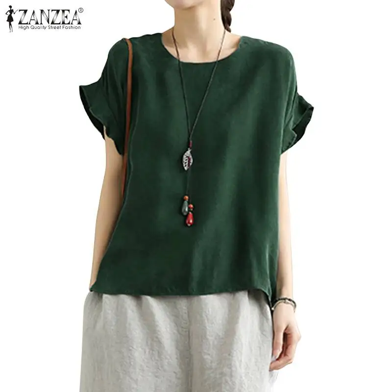 2021 летняя однотонная блузка ZANZEA, модная Базовая рубашка с оборками, женские повседневные блузы с коротким рукавом, женская рубашка, туника, топы