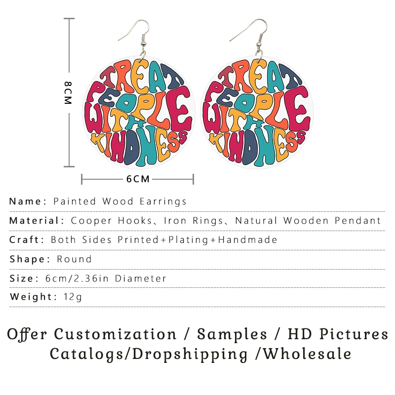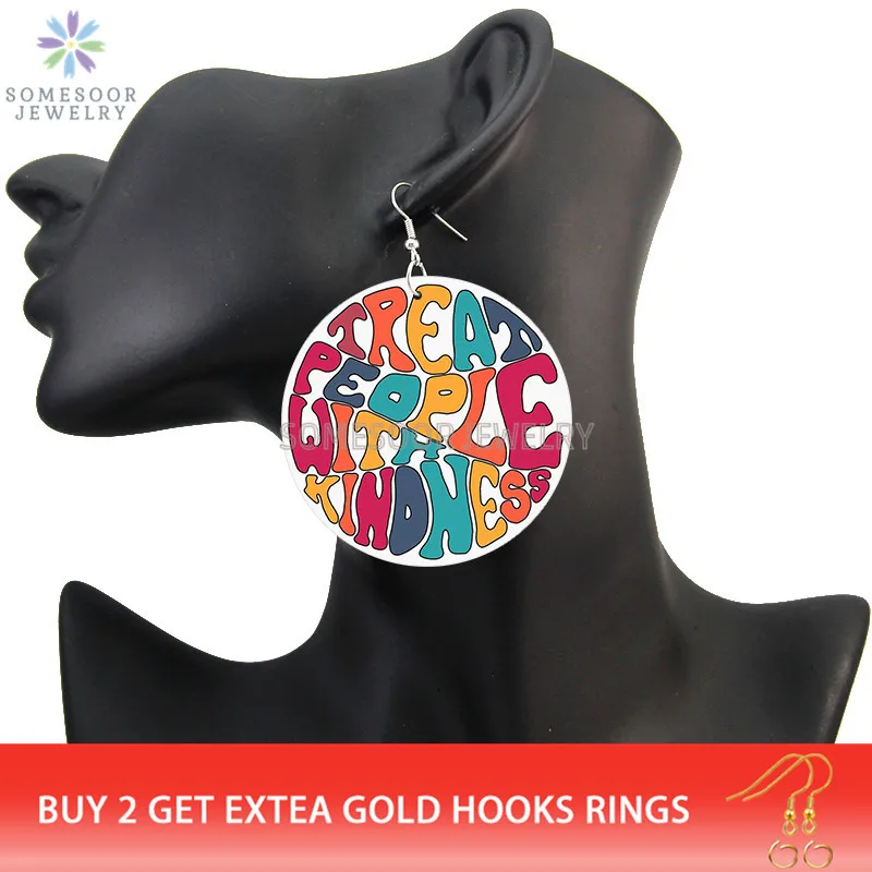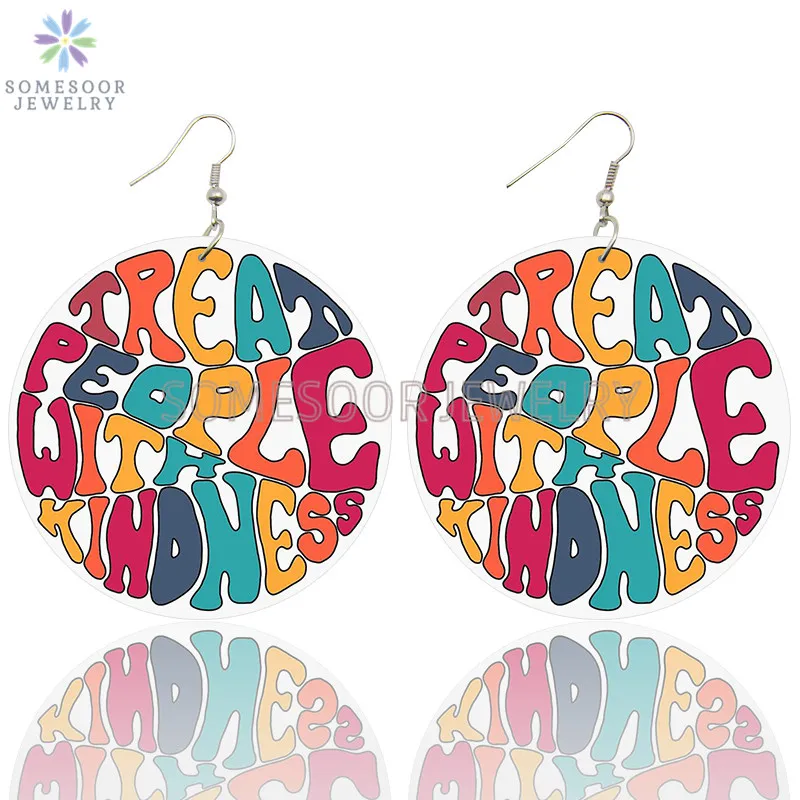 Деревянные висячие серьги SOMESOOR с надписью относиться к людям с добротой, вдохновленные поговорки, петли, Висячие аксессуары, ювелирные изделия для женщин