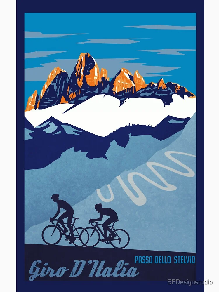 Классическая футболка с постером на велосипед Giro D Italia Retro Passo Dello Stelvio