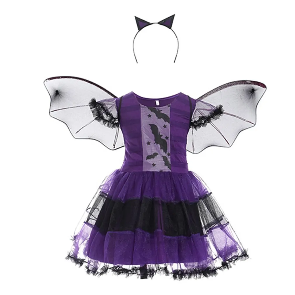 Новый детский плащ-дождевик для девочек на Хэллоуин, косплей летучая мышь платье с украшением в виде крыльев повязка на голову для костюмированной вечеринки на Хэллоуин вечерние костюм наборы для Карнавальная одежда