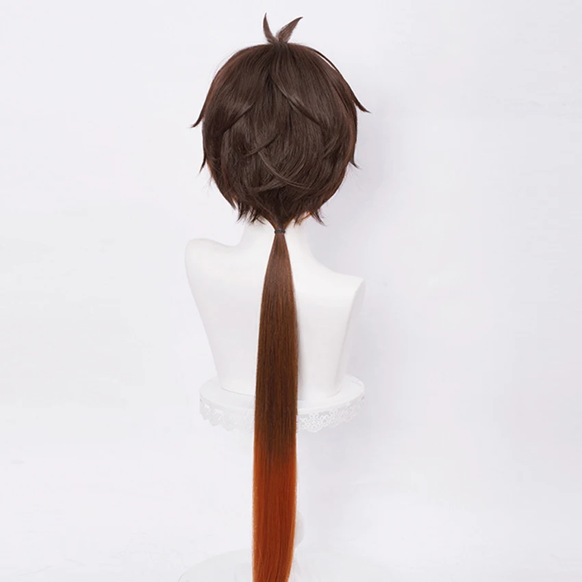 Парик для косплея Genshin Impact Zhongli длиной 90 см, Рождественский коричневый оранжевый парик, термостойкий синтетический парик для косплея аниме + шапочка для парика