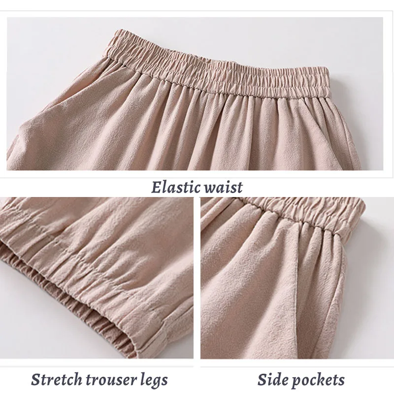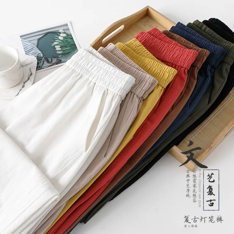 2022 Весна Лето Новые повседневные стильные хлопковые льняные брюки женские с эластичной талией однотонные Базовые Ретро свободные женские шаровары брюки