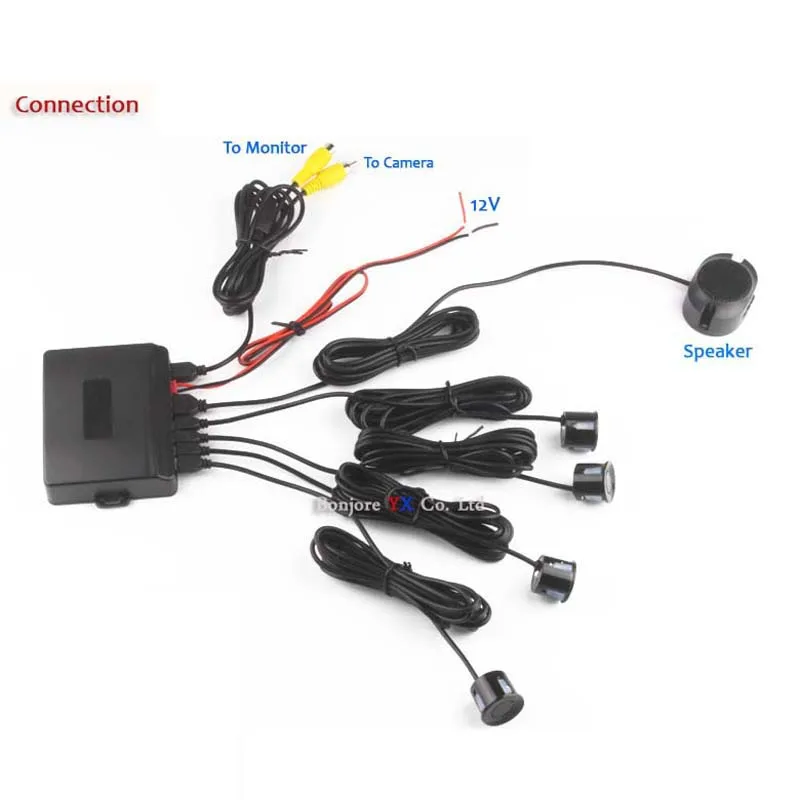 4 датчика двухъядерный Автомобильная камера заднего вида Система помощи при парковке звуковая сигнализация. Изображение заднего хода автомобиля и расстояние могут отображаться на мониторе зеркала автомобиля.