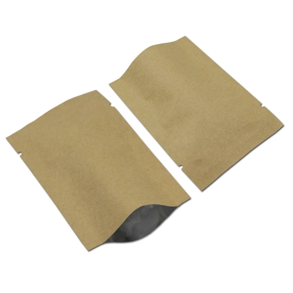 100 шт. с открытым верхом из крафт-бумаги Бумага Mylar Фольга мешок Жара-герметически упаковать Чай r Notch Еда хранения ювелирных изделий, упаковки для пищевых продуктов, сумки для Кофе для конфет и чая Чай пакет