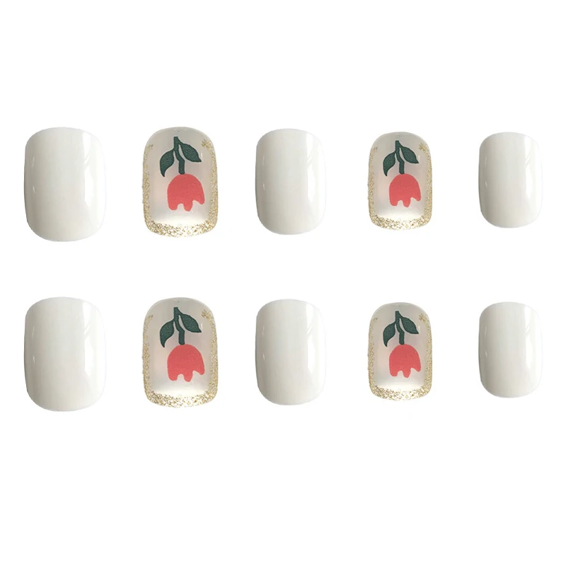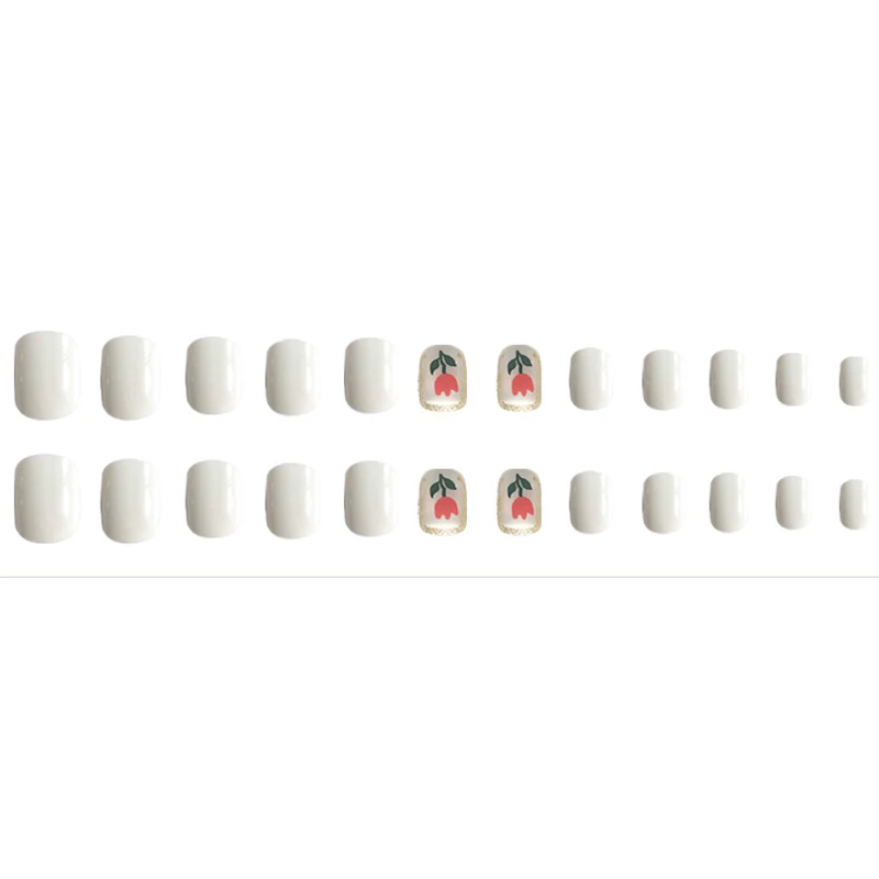 24 шт./компл. милые белые Искусственные ногти с квадратной головкой и цветочным узором, полное покрытие, искусственные наклейки для ногтей, инструменты для красоты ноготь невесты