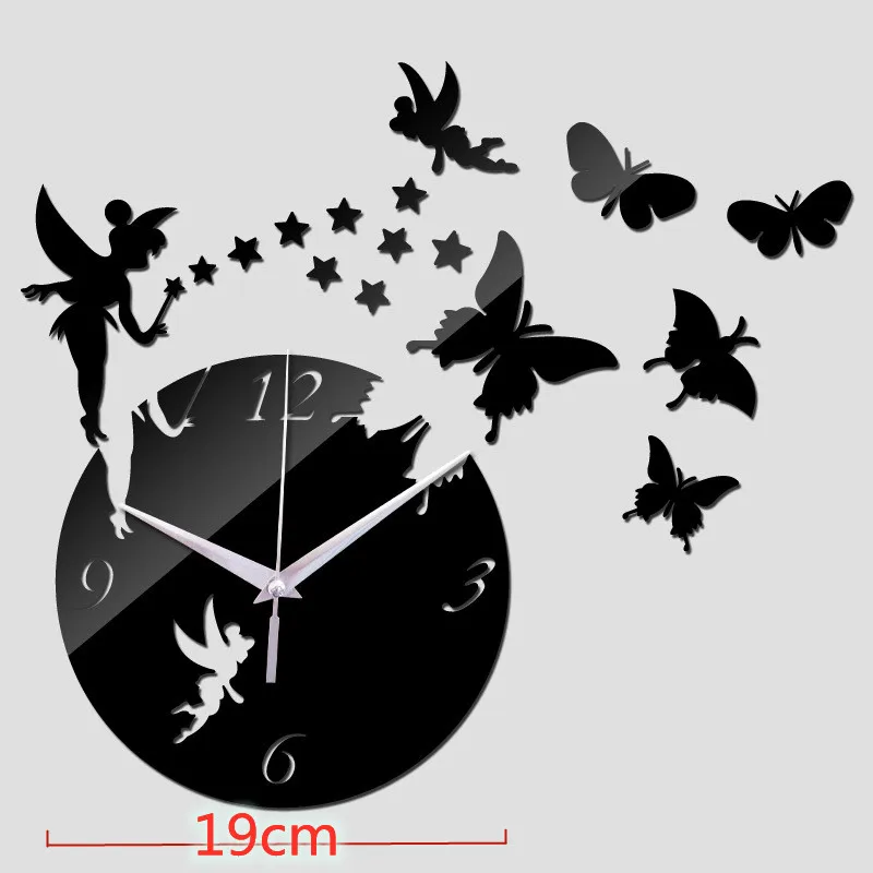 Diy сказочные настенные часы с бабочками акрил с зеркальным эффектом часы для гостиной современный дизайн домашние часы декор для детской комнаты бесшумный подвесной Klok