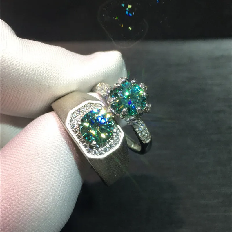 Серебряное кольцо с изумрудом 1 карат превосходной огранки, обручальное кольцо с бриллиантом, мужскоеженское, мужское, светло-зеленое, кольцо с муассанитом, серебро 925