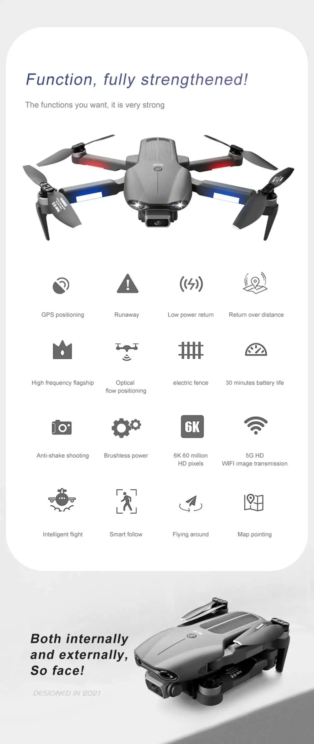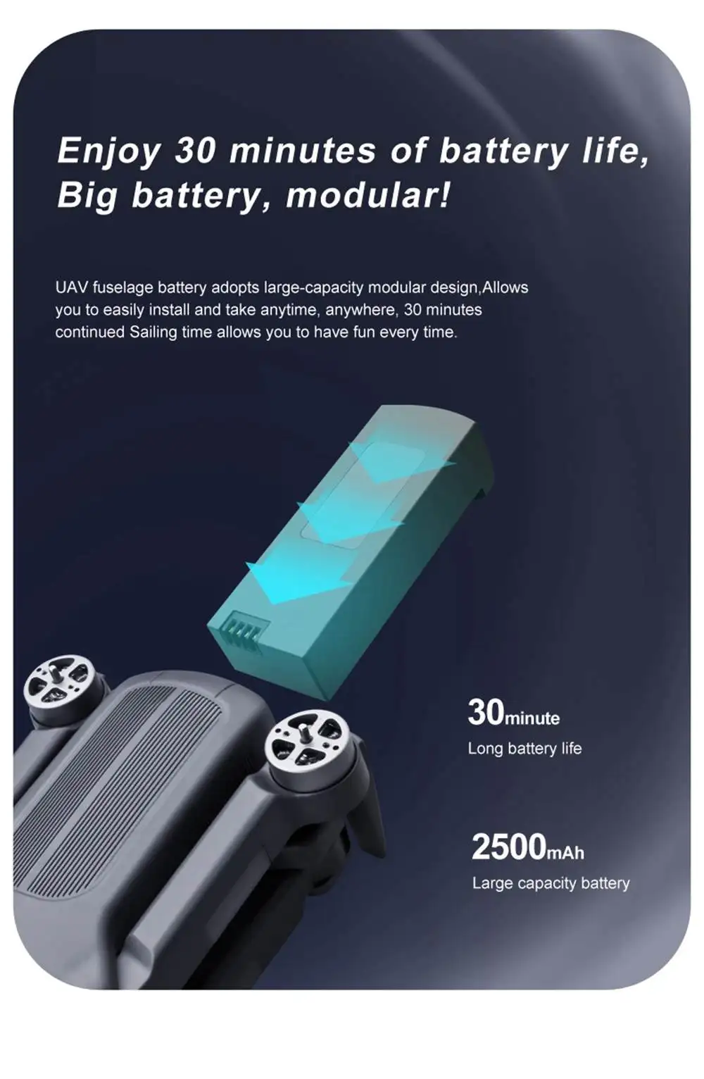 Квадрокоптер складной с двойной камерой 6K HD, Wi-Fi, FPV, GPS, время полета 30 минут