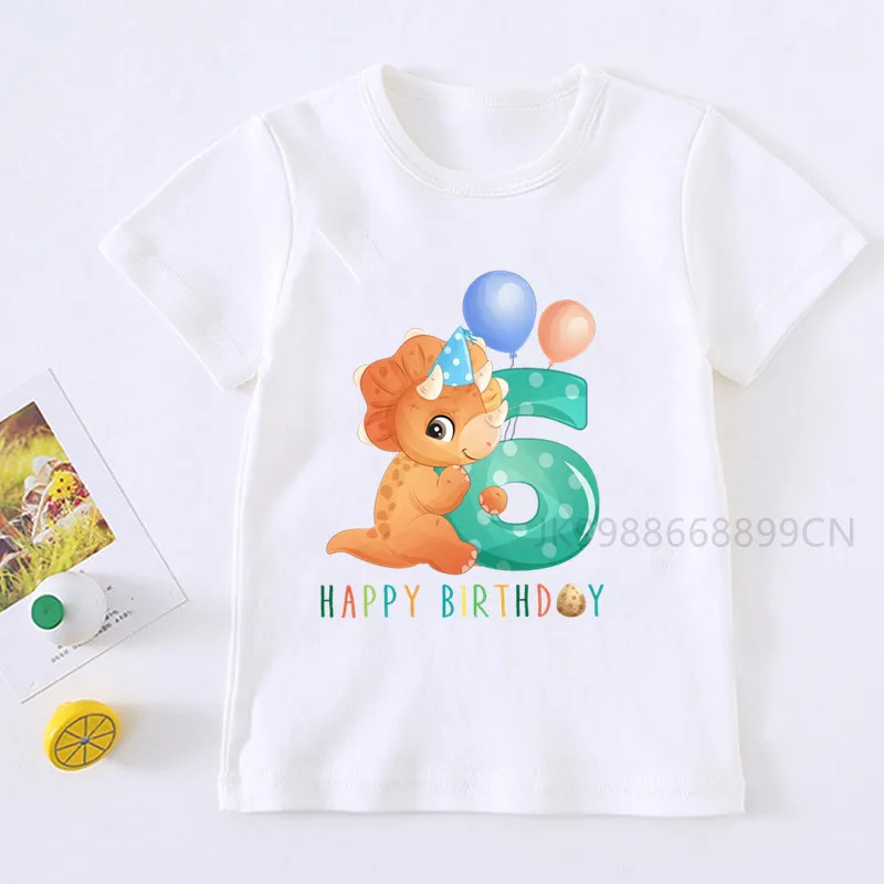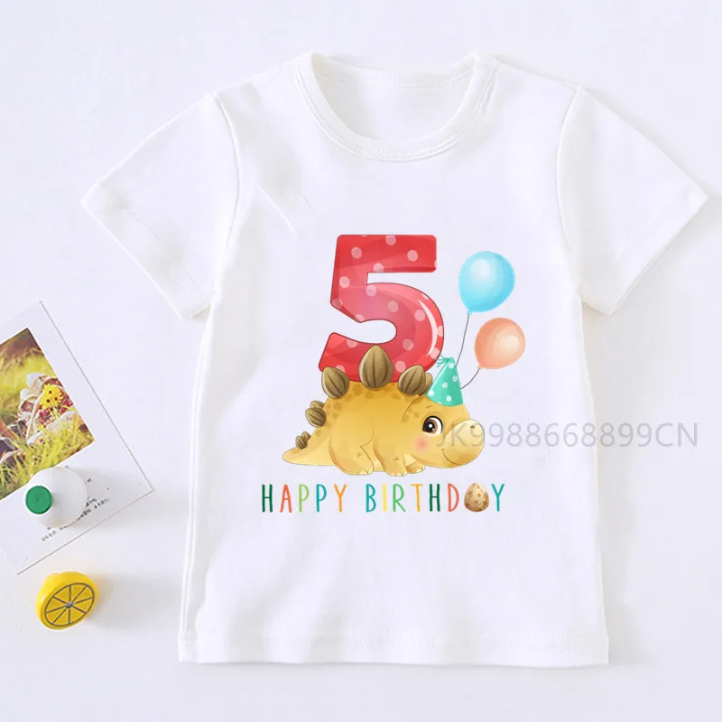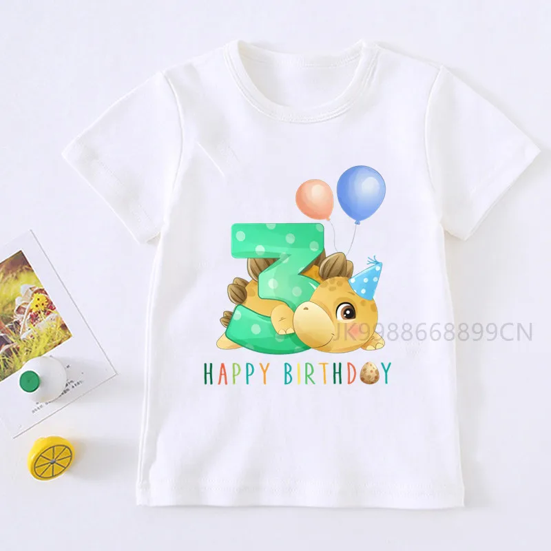 Детская футболка с изображением милого динозавра, номера на день ро...