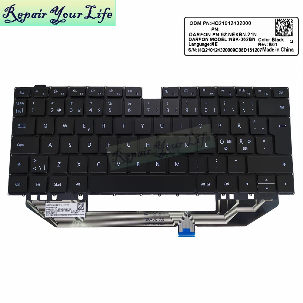 Клавиатура Nordic European EU для Huawei MateBook X Pro MACH-W19 MACH-W29 MACHR-W19 W19B W19C W29B 9z. Nexbn норвежская Клавиатура NE