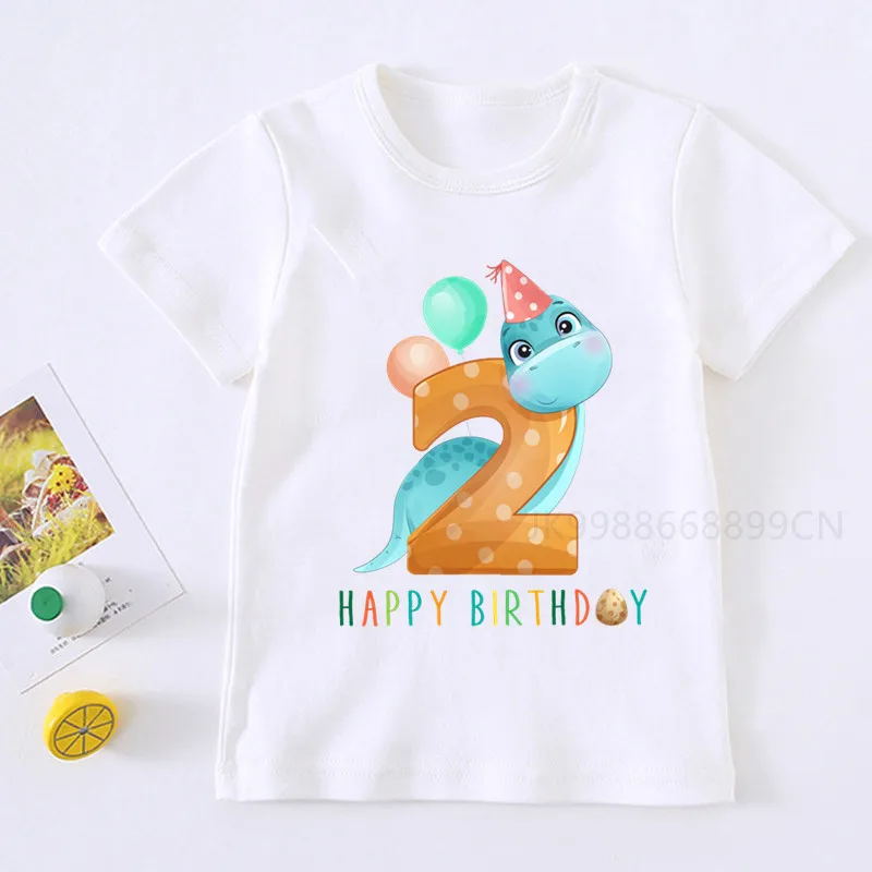 В 2021 году, футболка с принтом цифр и динозавров для мальчиков от 1 до 9 лет Дети День рождения мальчик динозавр парвечерние футболки мальчик и девочка смешной подарок, футболка