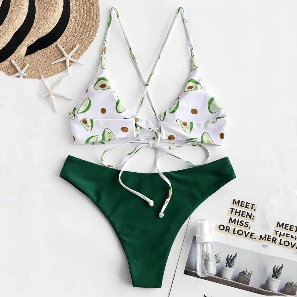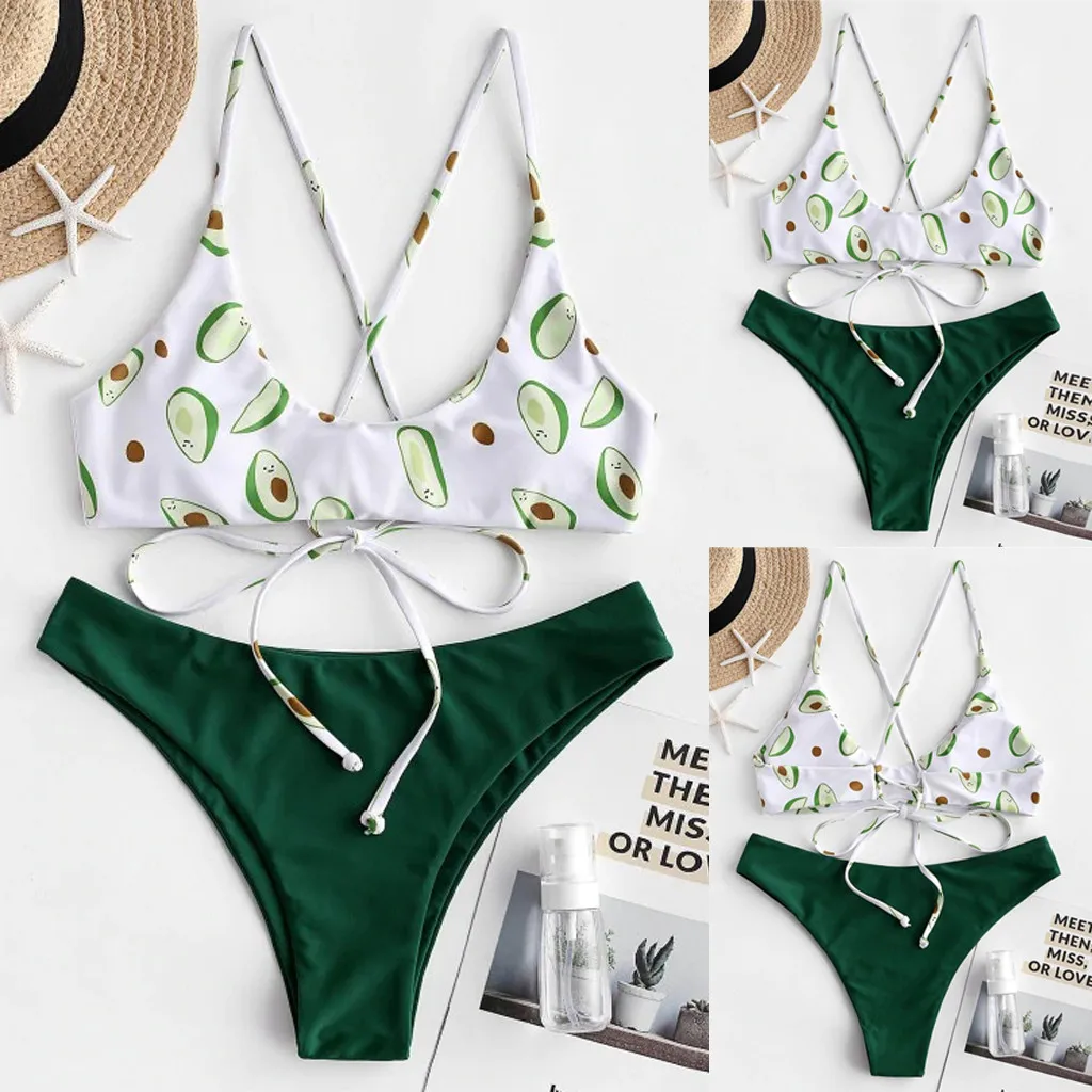 Зеленое бикини с принтом авокадо, пикантный Женский бикини с мягкими чашечками, Купальник, пляжная одежда, милый Купальник, Купальник Женский, 2021 @ 40