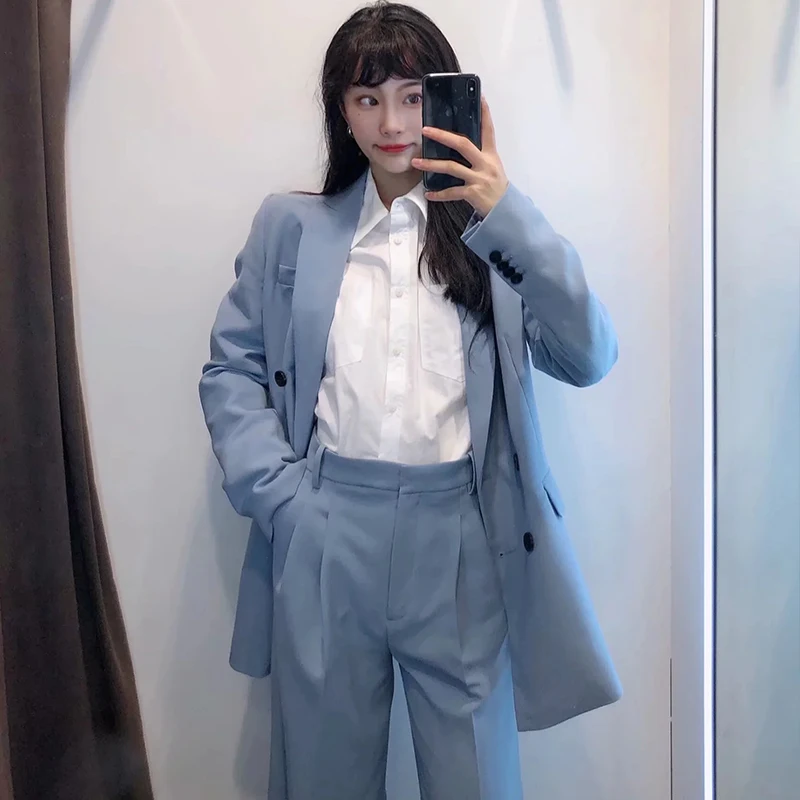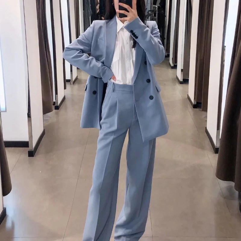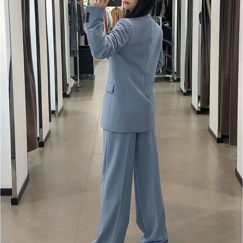 Женские брюки с отложным воротником ZA, однотонные повседневные свободные брюки с широкими штанинами, осень 2021
