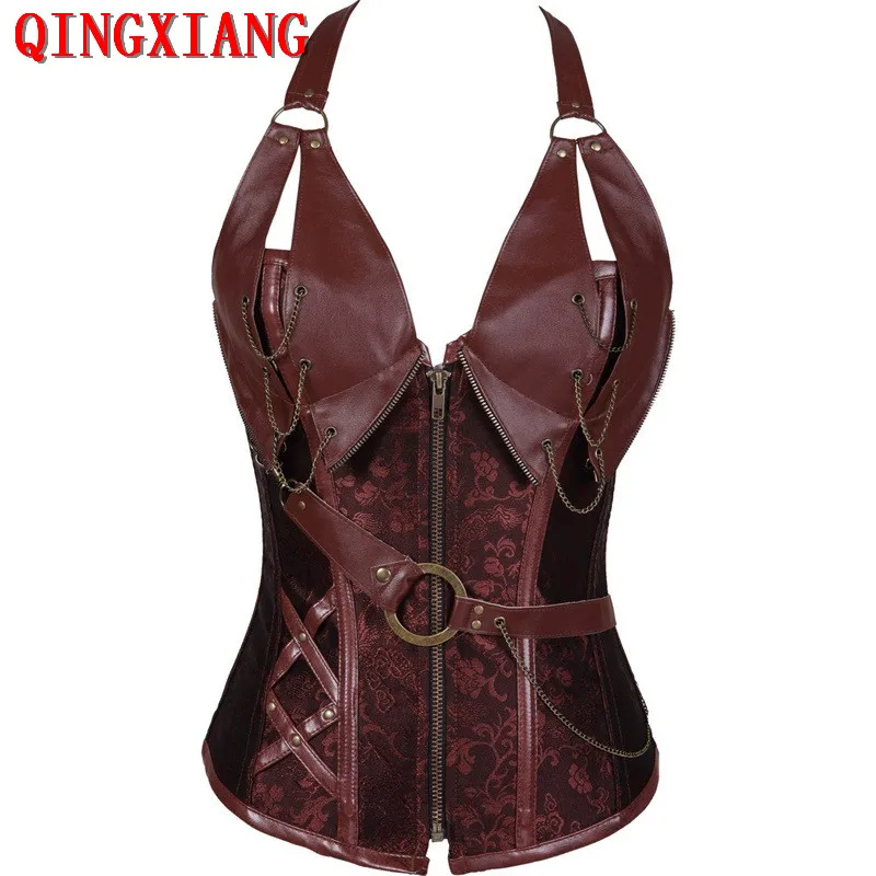 S-6XL 2021 Холтер латекс готический бюстье сексуальный коричневый стальной костяной панк-корсет стимпанк Талия Корсеты Топ женский шнуровка сзади корсеты