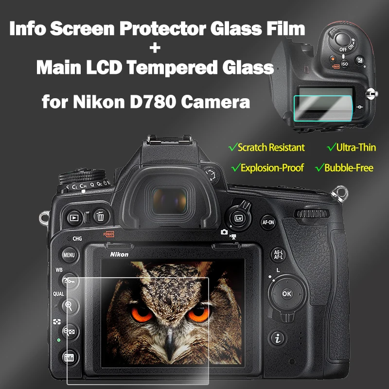 Закаленное стекло для камеры Nikon D780, защитное самоклеящееся стекло, основной ЖК-дисплей + Защитная пленка для экрана