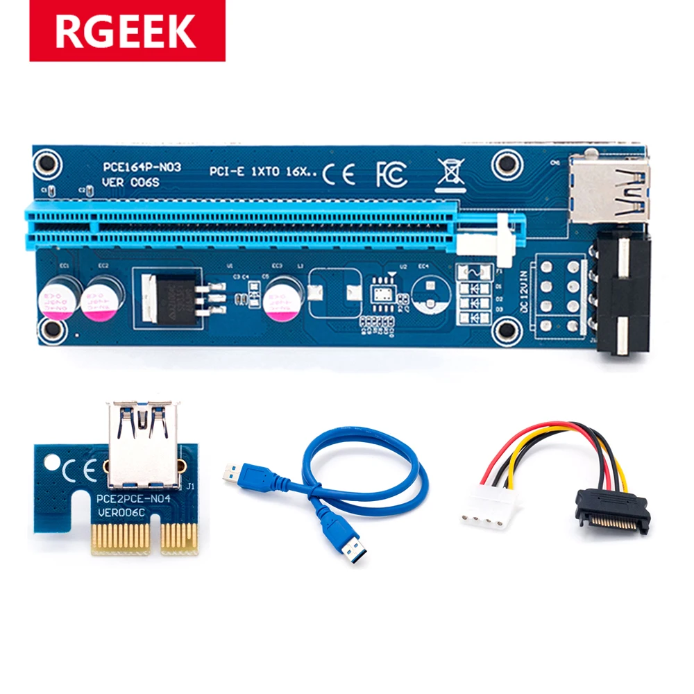 RGeek USB 3.0 PCI-E Pci e Райзер 1X 4x 8x 16x Райзер адаптер карты PCI Express Pcie SATA 15pin штекер к 4-контактному кабелю питания райзер для видеокарты