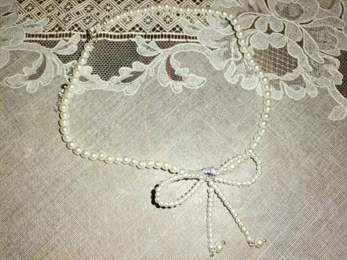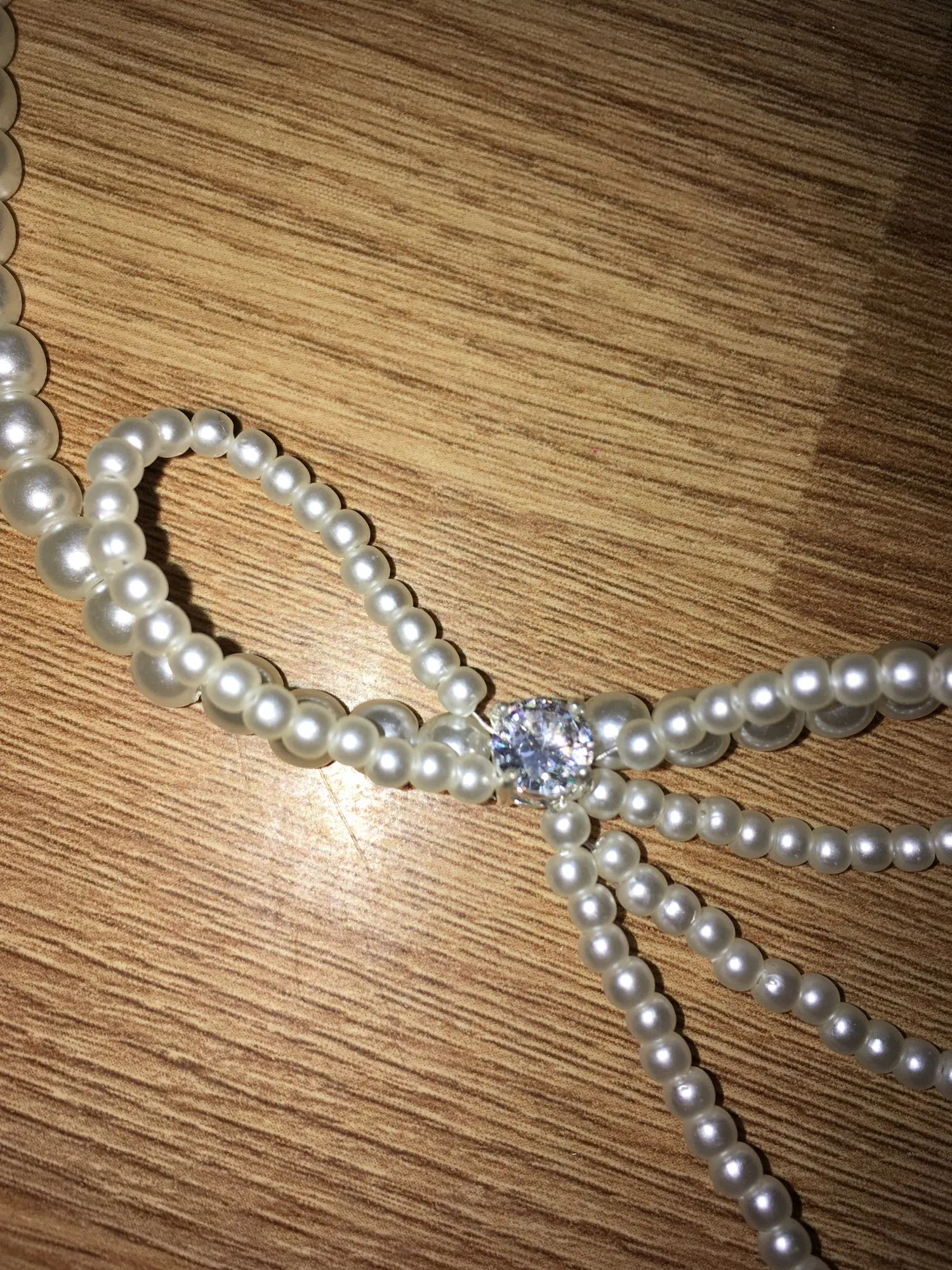 Ожерелье из белого воротника имитация жемчуга и элегантный галстук-бабочка, конечно, и приятно по цене, но не очень качественная и довольно детская отделка, немного разочарован, выглядит красивее на фотографиях, приемлемое время доставки Нет контакта с продавцом.
