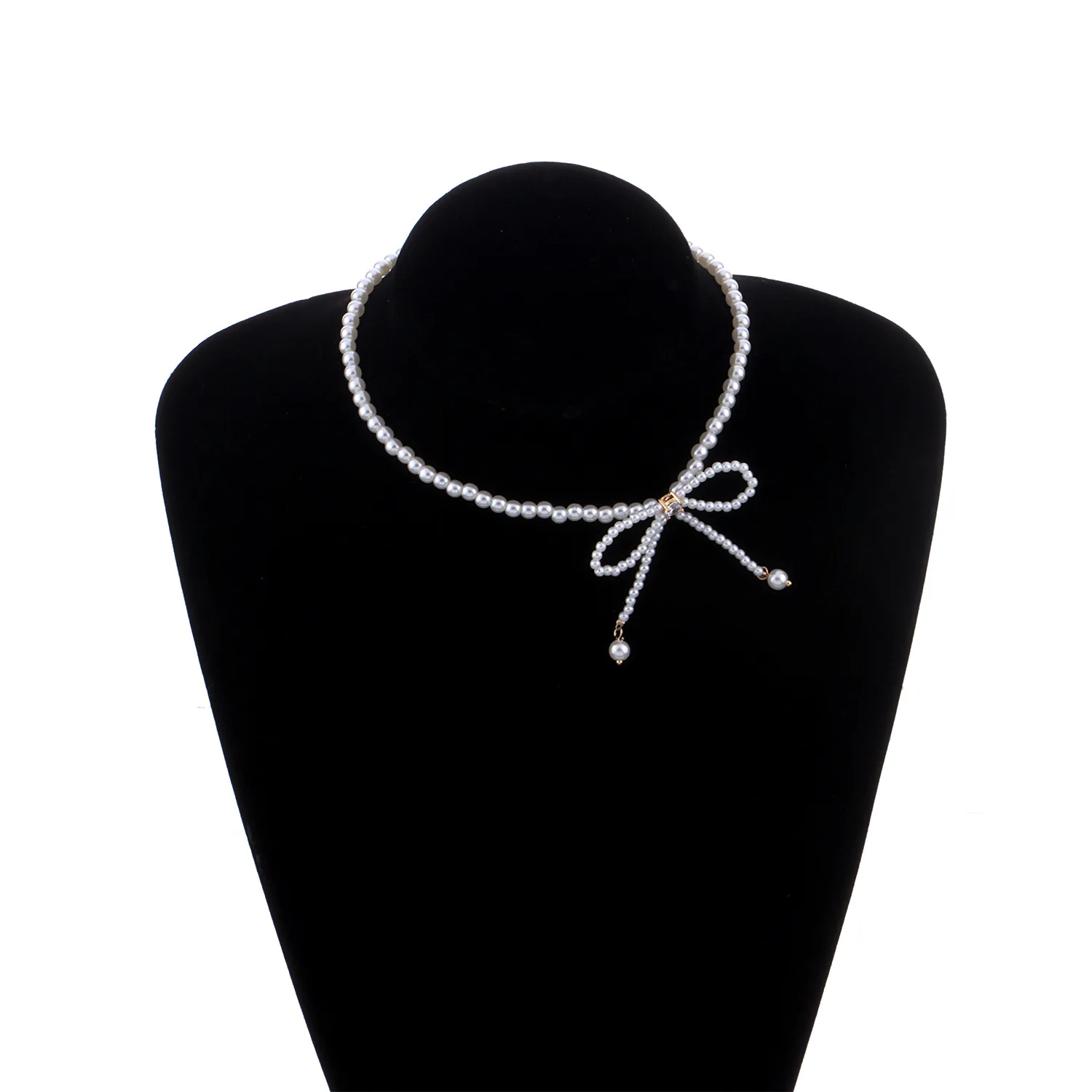 Чокер женский с имитацией жемчуга, элегантное ожерелье из белого искусственного жемчуга, милая бабочка, бант, Жемчужное свадебное ожерелье, изящная бижутерия