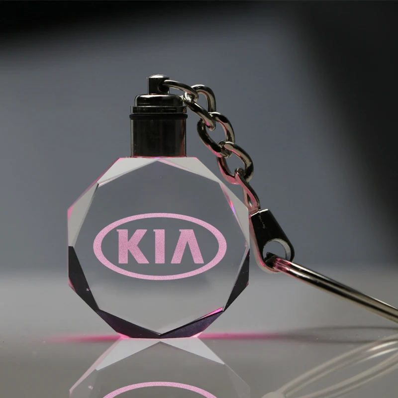 Креативный 3d-брелок для ключей из стекла, металлическая многоцветная Лампа для значка kia, автомобильные аксессуары для стайлинга автомобилей, мужские деловые цепочка для ключей в подарок