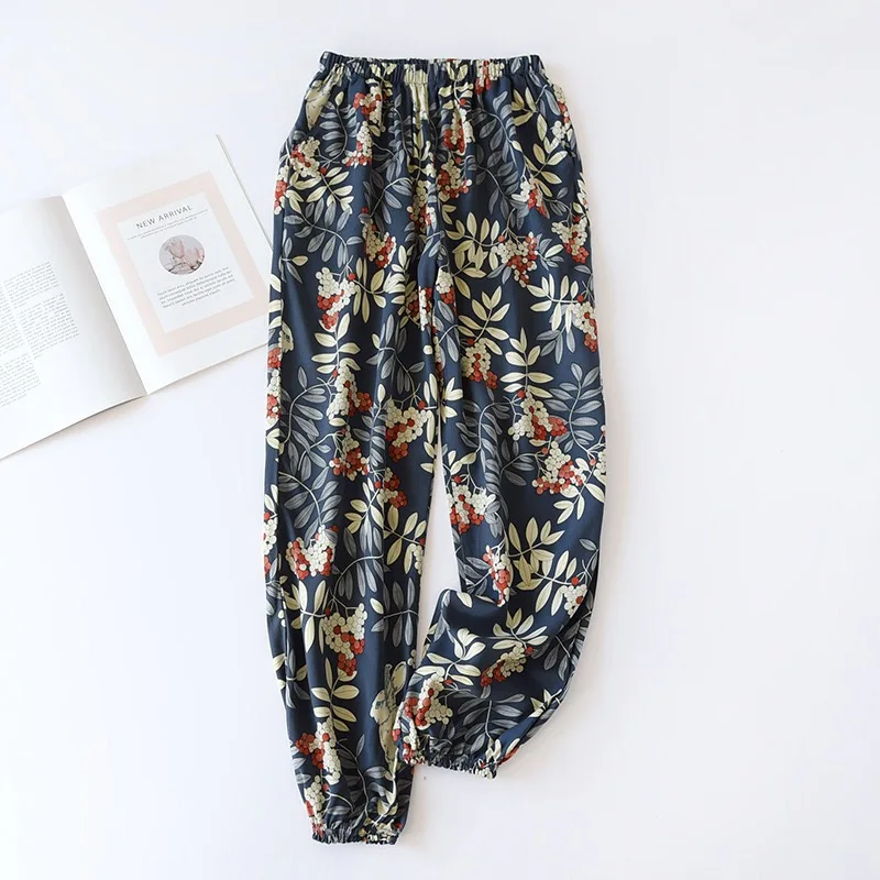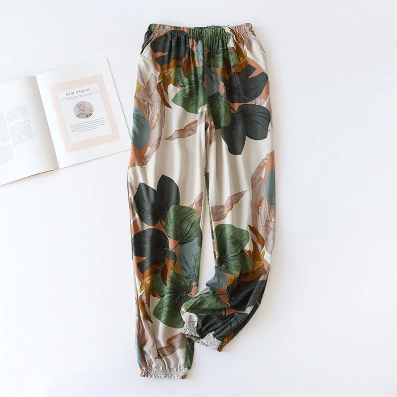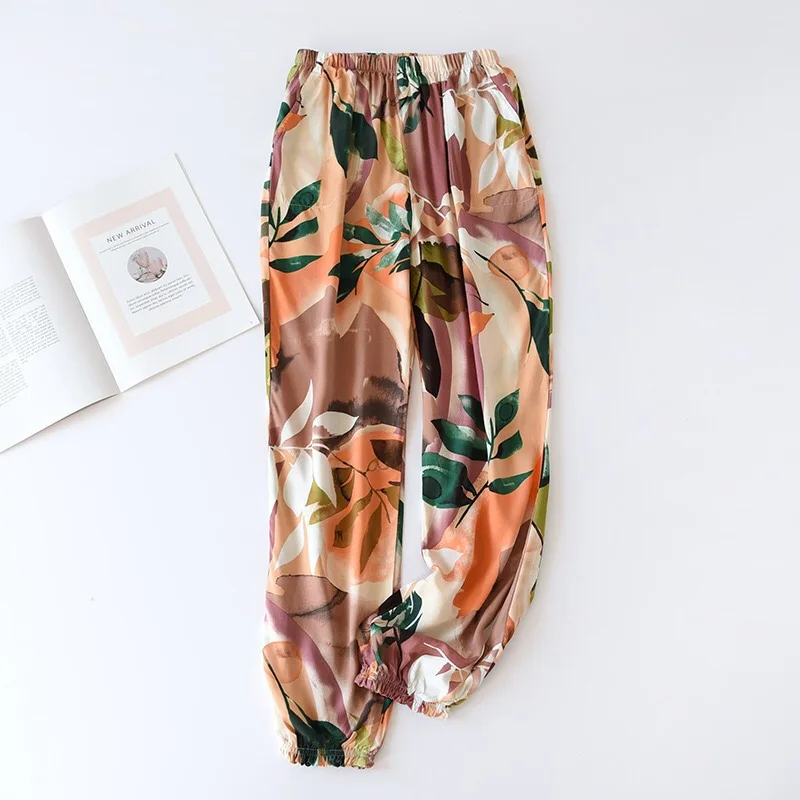Новинка 2022, брюки с цветочным принтом на весну и лето, тонкие и классные домашние брюки с защитой от комаров, мягкие женские брюки из искусственного шелка с карманами