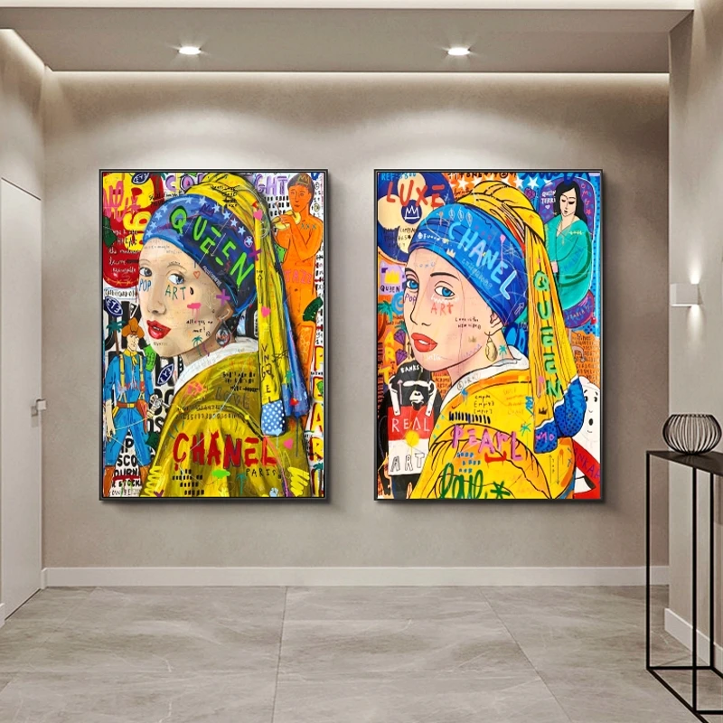 Граффити искусство девушка с жемчугом Серьги холст фотообои известная улица фотография современный дом