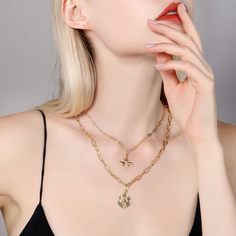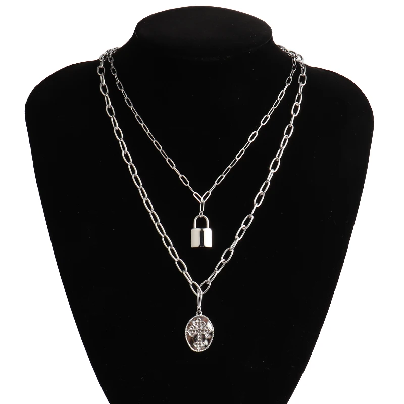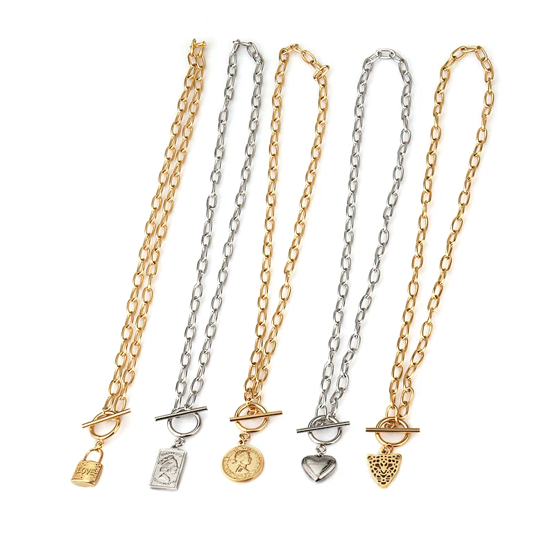 Ожерелье женское из нержавеющей стали, ожерелье с множеством толстых цепочек, подвеска Замок с монетами, ювелирное изделие