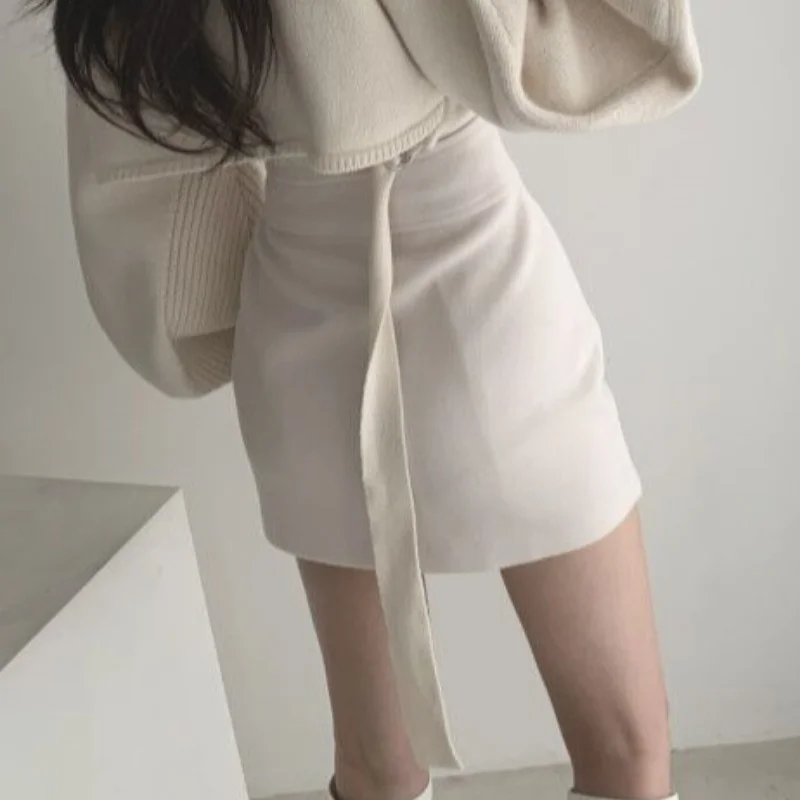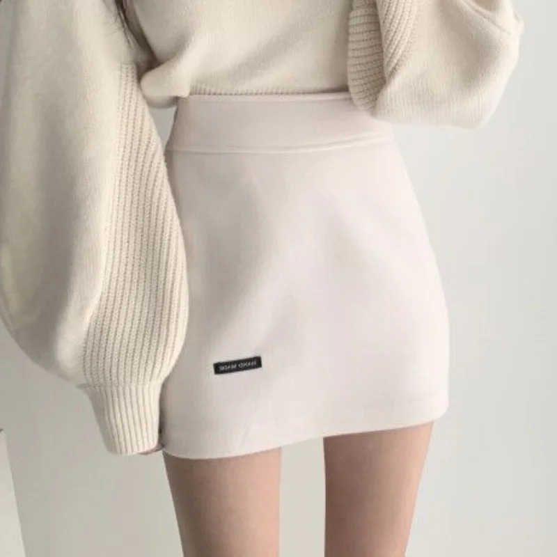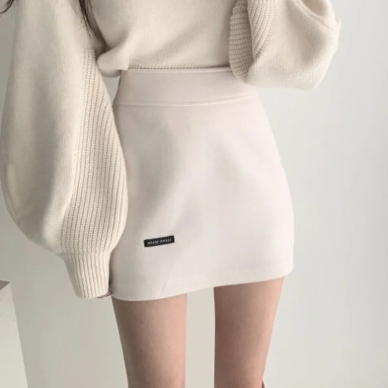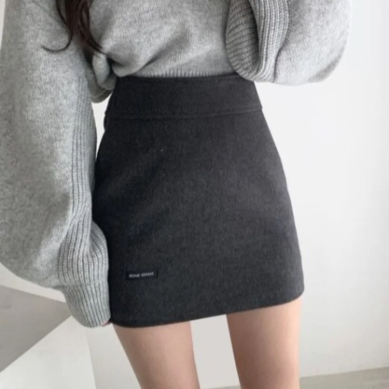 Новинка 2021, Корейская версия, однотонная Уайлд Высокая талия сумка, юбка трапециевидной формы, короткая юбка из шерсти