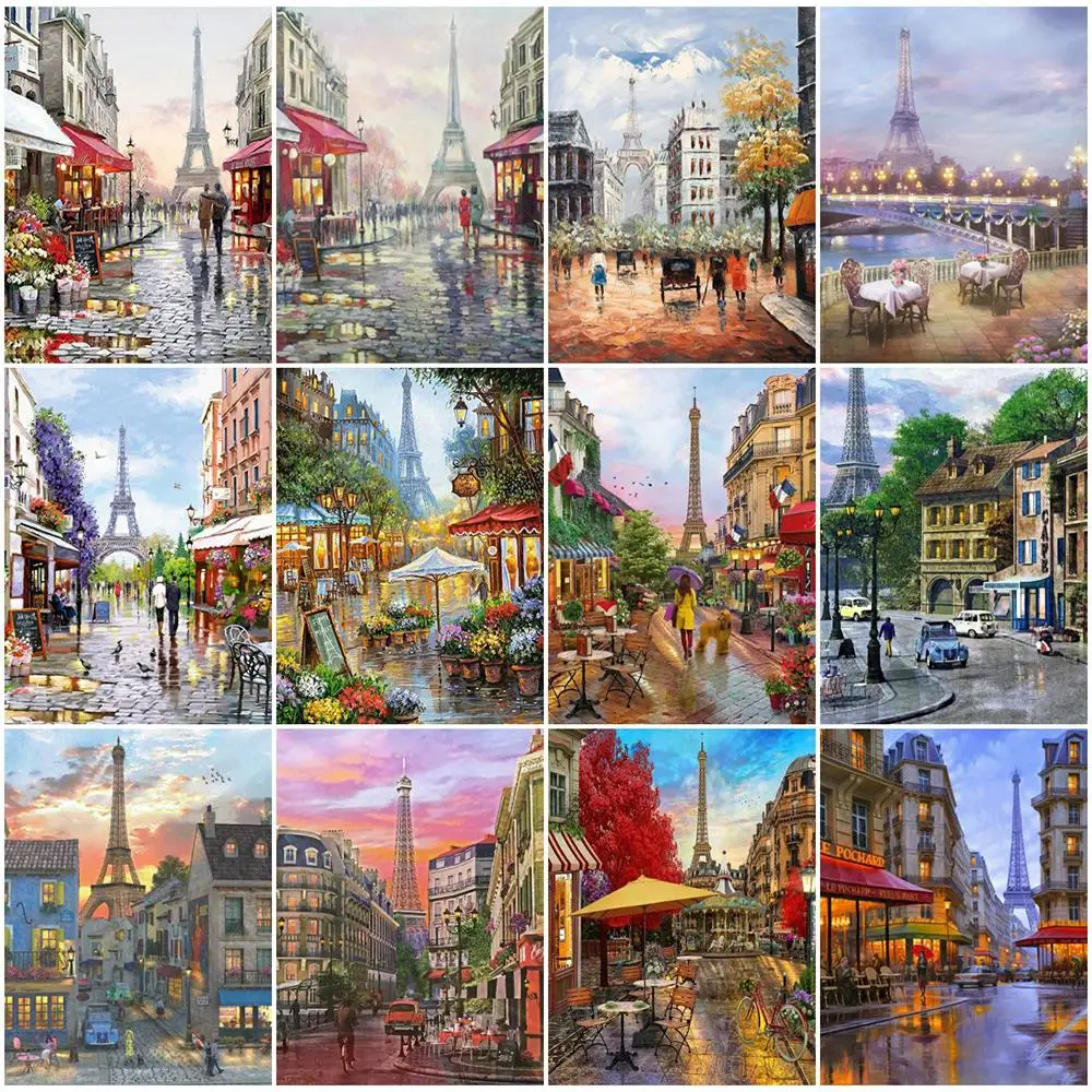 Алмазная живопись живописная улица полный квадраткруглая Алмазная вышивка башня картины с видами Парижа Стразы мозаика домашний декор